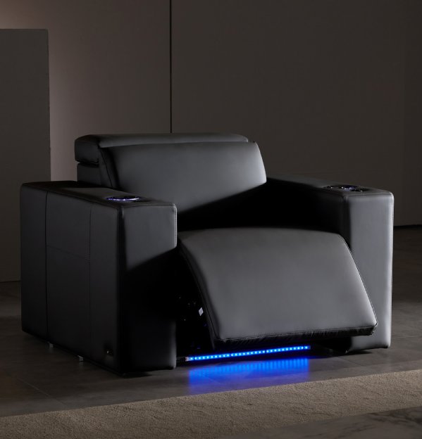 Stylish black chrome cupholders enhance your seating with a refined, modern touch—functional elegance for every movie night.