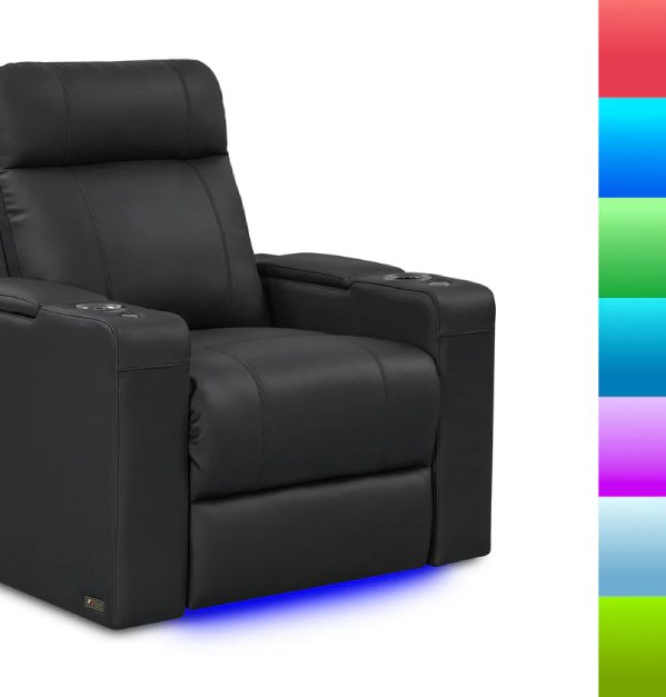 Create a cinematic atmosphere with ambient LED lighting. Subtle illumination under the base and cupholders adds a modern glow while helping you navigate your theater room without disrupting the mood.