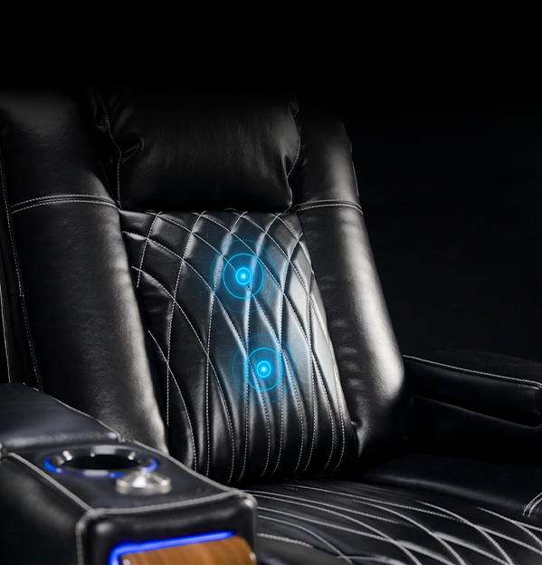 Find your ideal viewing angle with the power-adjustable headrest. At a simple touch, the headrest adapts to your posture, relieving neck tension and helping you stay relaxed through long movie sessions.