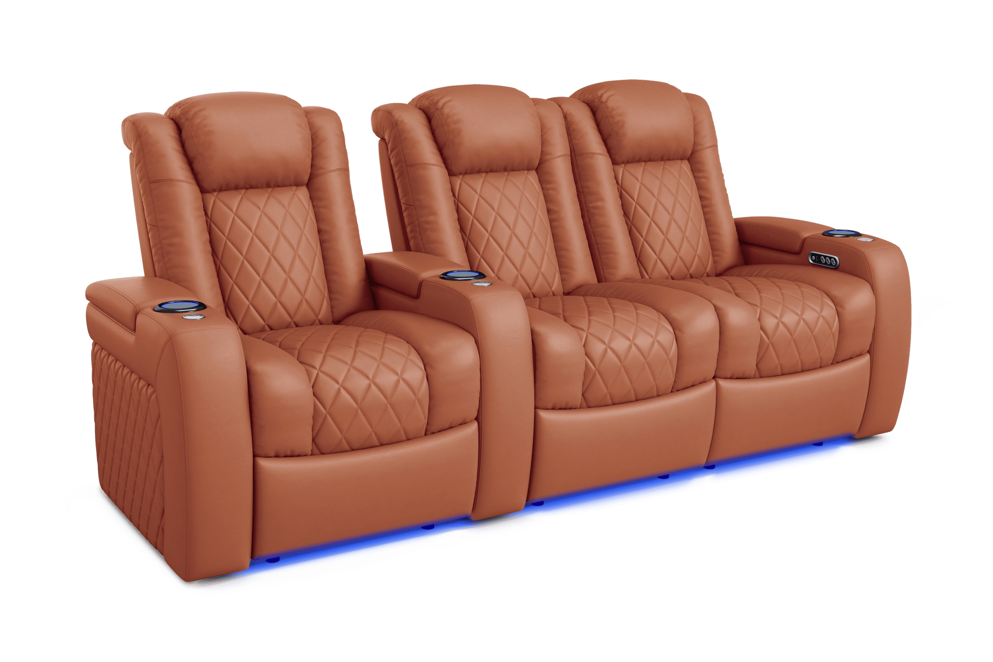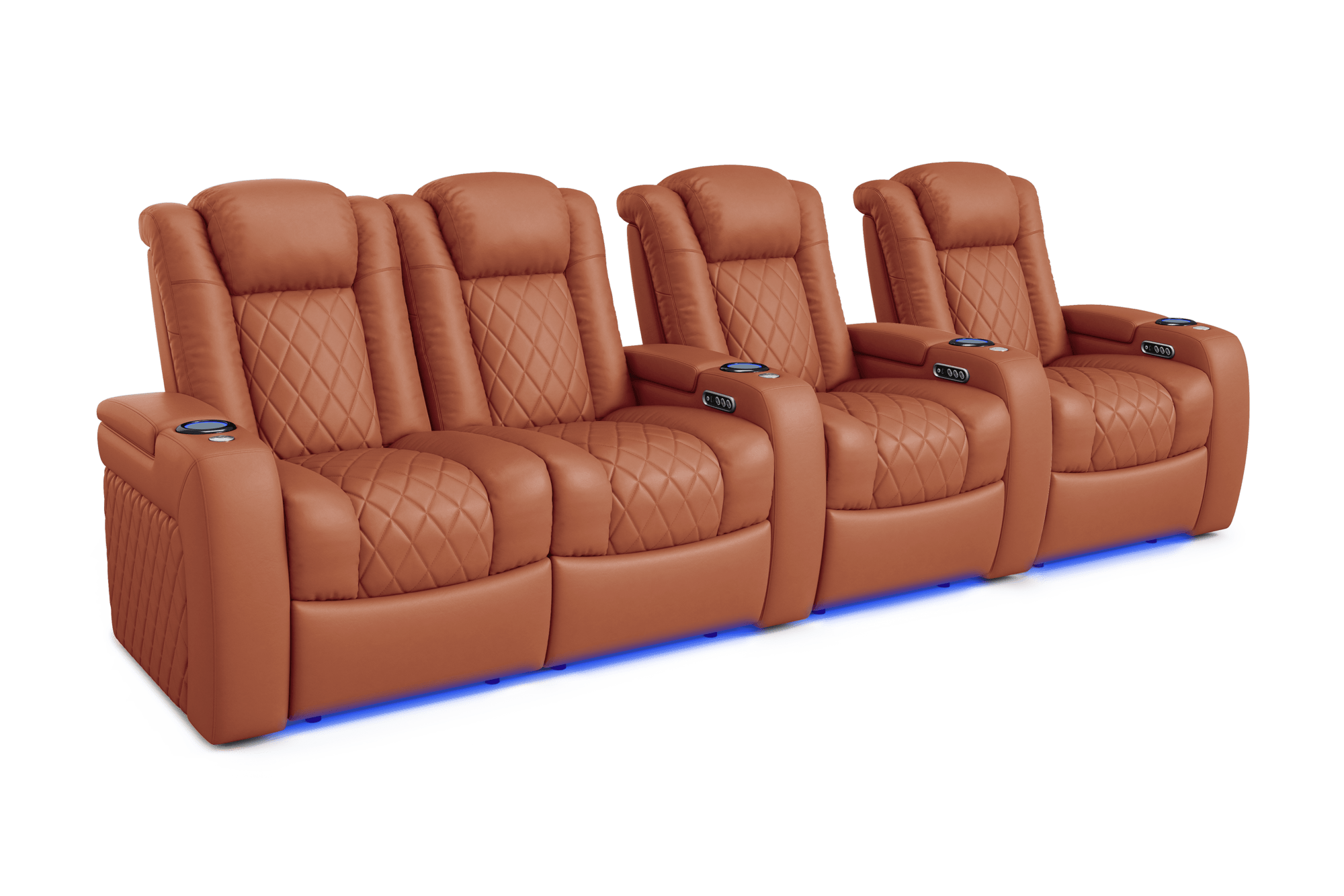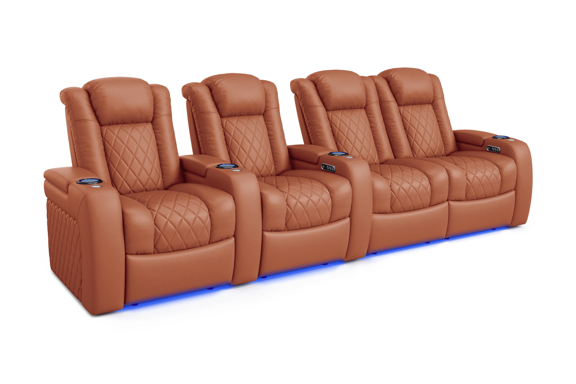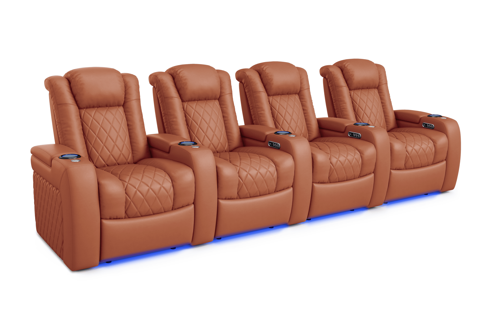 Introducing the 2025 Version of Our Best-Selling Tuscany Home Theater Seating! Upgrade your home theater with the brand new Tuscany 2025 with upgraded technology and cutting-edge comfort, A perfect blend of luxury, style, and comfort. Designed for unmatched relaxation, this premium recliner is crafted with new imported Italian Nappa 11,000 Top Grain Leather on all seating surfaces, offering a smooth and elegant touch. Enjoy immersive movie nights with new RGB cup holders with ambient base lighting, and a motorized reclining system that lets you find your perfect seating position effortlessly. The newly upgraded Tuscany now features deeper hidden arm storage, perfect for keeping your accessories close at hand. Plus, an air piston-assisted storage lid ensures smooth and safe operation. Our tactile button control system replaces traditional soft-touch buttons, allowing you to activate all functions simultaneously for an enhanced experience.
