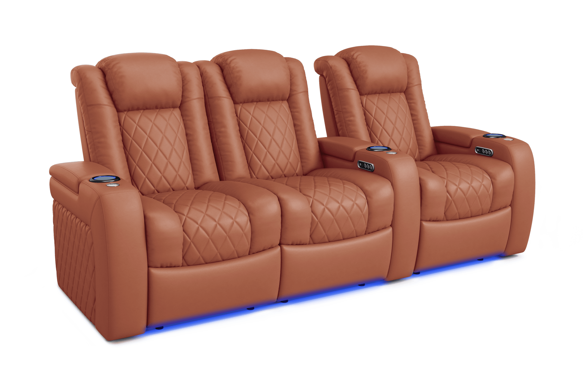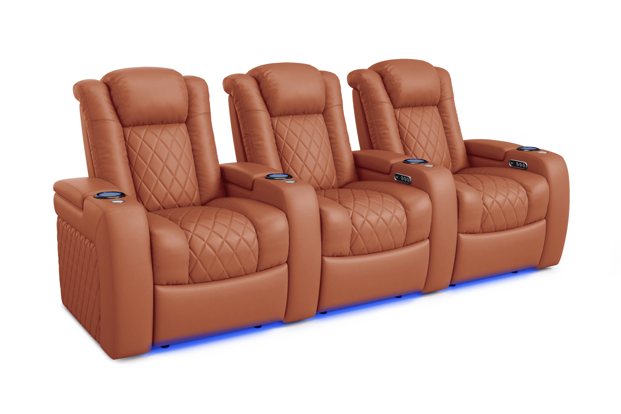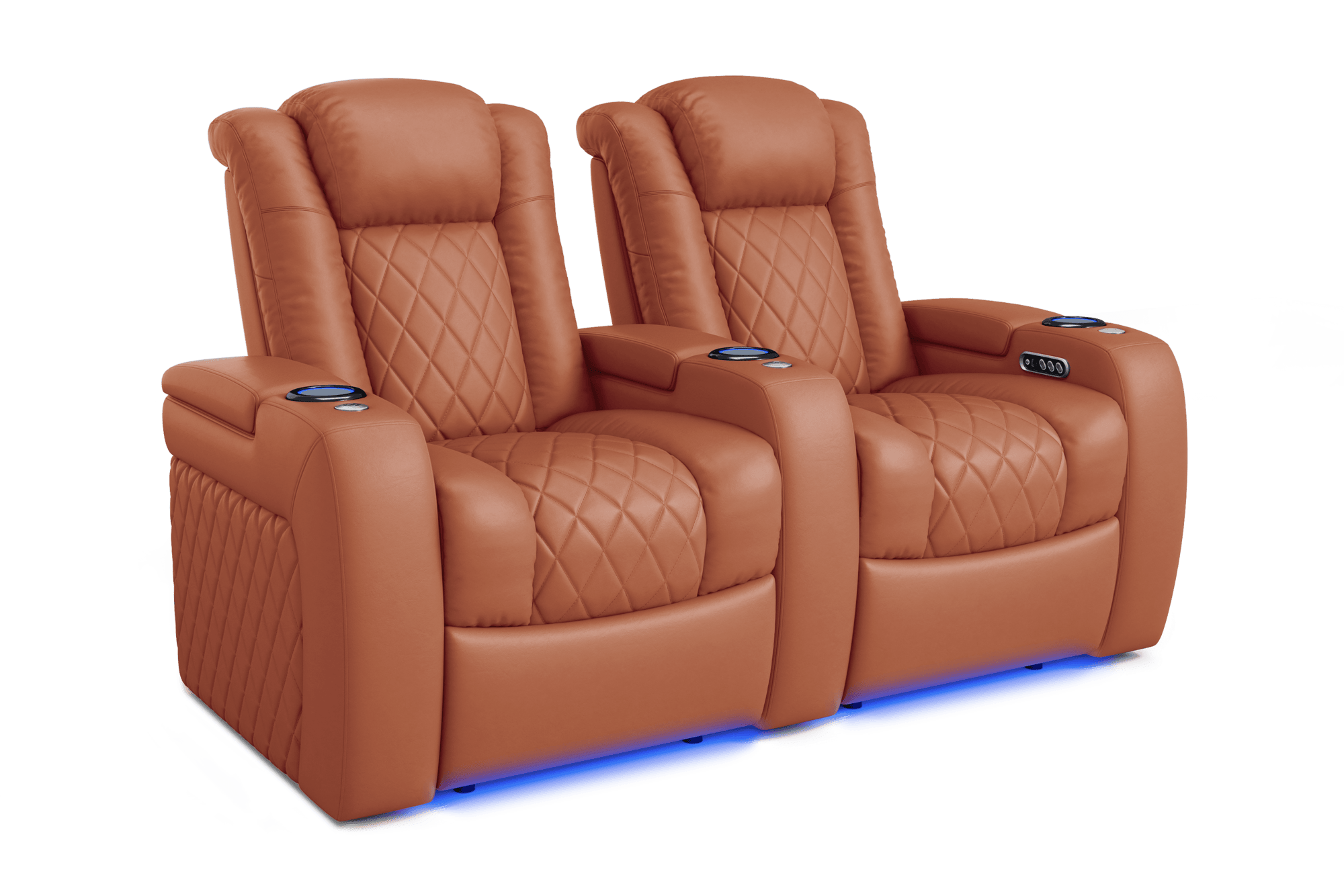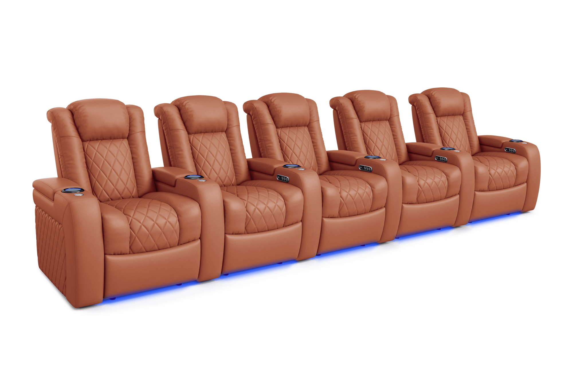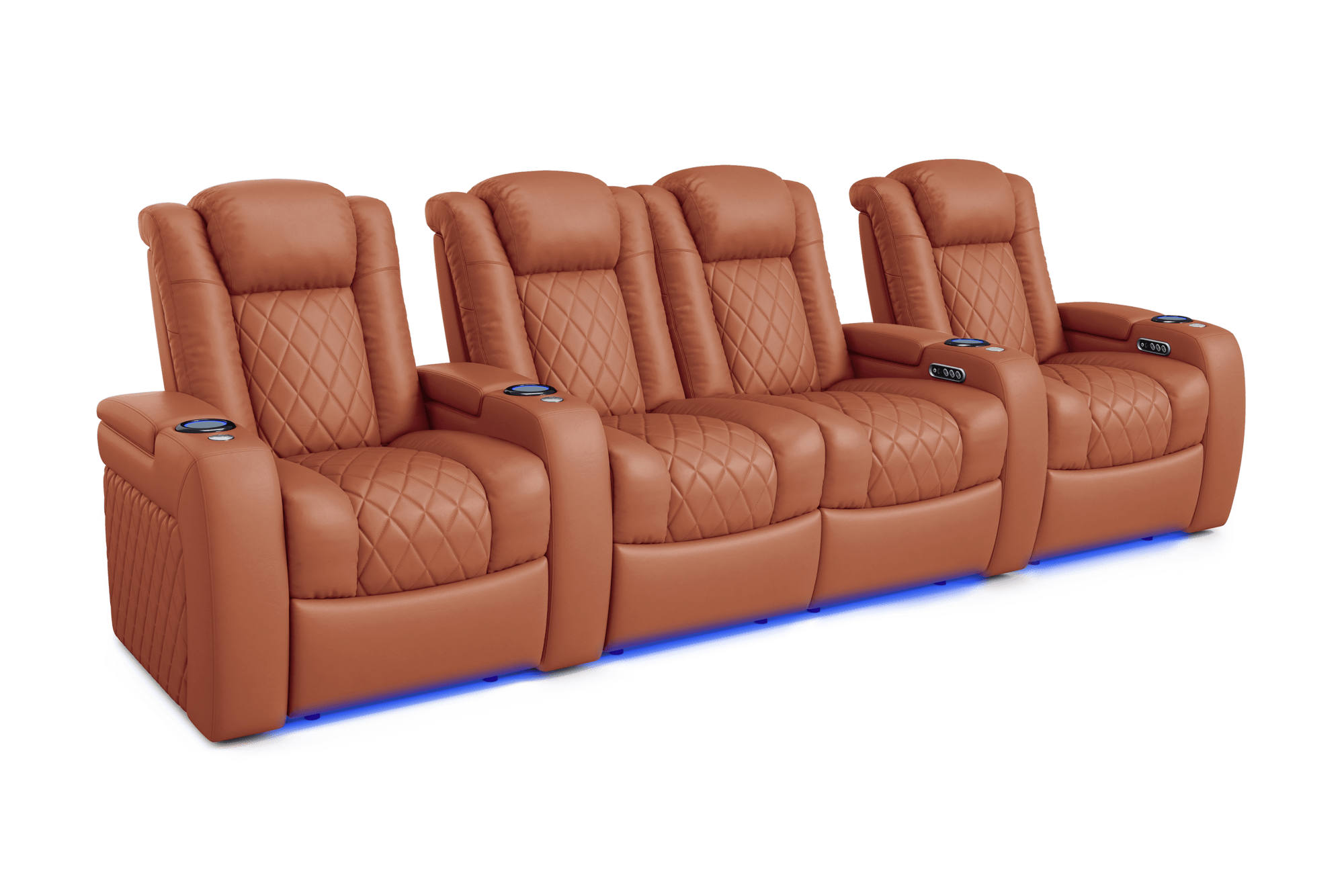 Introducing the 2025 Version of Our Best-Selling Tuscany Home Theater Seating! Upgrade your home theater with the brand new Tuscany 2025 with upgraded technology and cutting-edge comfort, A perfect blend of luxury, style, and comfort. Designed for unmatched relaxation, this premium recliner is crafted with new imported Italian Nappa 11,000 Top Grain Leather on all seating surfaces, offering a smooth and elegant touch. Enjoy immersive movie nights with new RGB cup holders with ambient base lighting, and a motorized reclining system that lets you find your perfect seating position effortlessly. The newly upgraded Tuscany now features deeper hidden arm storage, perfect for keeping your accessories close at hand. Plus, an air piston-assisted storage lid ensures smooth and safe operation. Our tactile button control system replaces traditional soft-touch buttons, allowing you to activate all functions simultaneously for an enhanced experience.