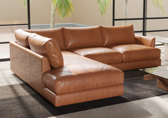 Valencia Serena Leather 2-Piece Right Bumper Chaise Sectional Sofa, Cognac