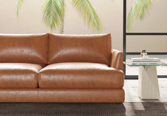 The Serena Collection features specially treated Italian leather that helps resist everyday wear and light pet scratches, making it a smart choice for pet-friendly leather sofas.