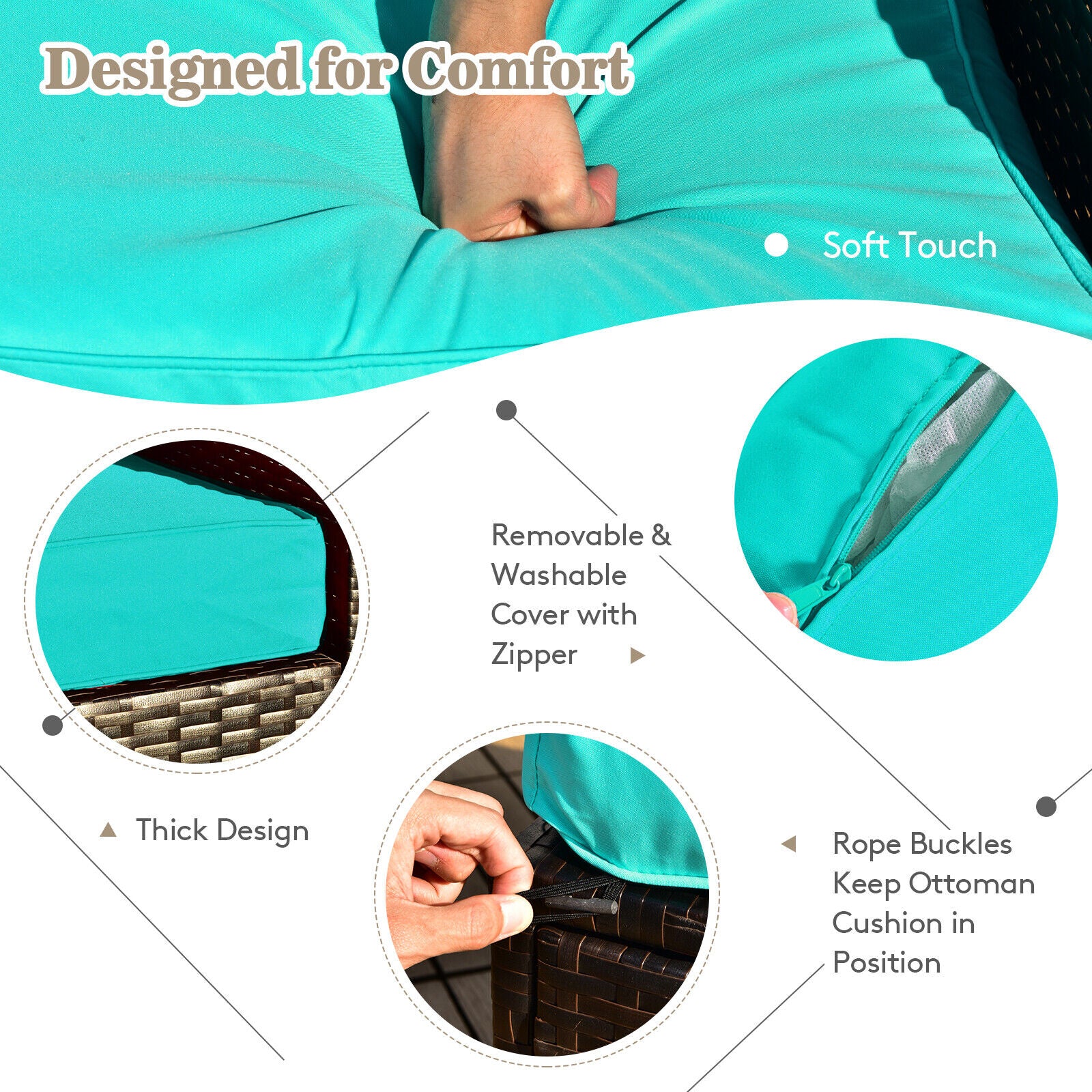 ● Comfy Cushions: Each ottoman, armless sofa and corner sofa are equipped with soft and thick cushions for optimal comfort. When you put legs on the ottomans, the ottomans' cushions will not slip away because of fixing ropes and buttons. Besides, all the cushion covers can be removable for easy cleaning. Please note that the dimensions of the back and seat cushions of the armless sofa and corner sofa are different, do not mess them up. Take cushions inside if it rains.