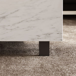 - Matte Black Metal Legs: Sleek and striking legs contrast elegantly with the table's luxurious marble top.