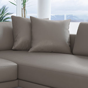 Transform your living space with the Alessandro Leather Modular Sectional Sofa. Upholstered in Italian Nappa 11000 Top Grain Leather on all the Seating Surfaces, it offers a premium, sophisticated look and feel. Built to last, its kiln-dried hardwood frame with reinforced corner blocks and doweled joints ensures durability. The soft-padded frame, with polyurethane foam and polyester fiber, combined with 3-layer high-density foam cushioning topped with goose feathers, guarantees ultimate comfort. Stainless steel foot provide sturdy support, while a walnut veneer storage table with a push-to-open drawer adds convenience. Complete with two throw pillows, the Alessandro sectional is the epitome of style and luxury.