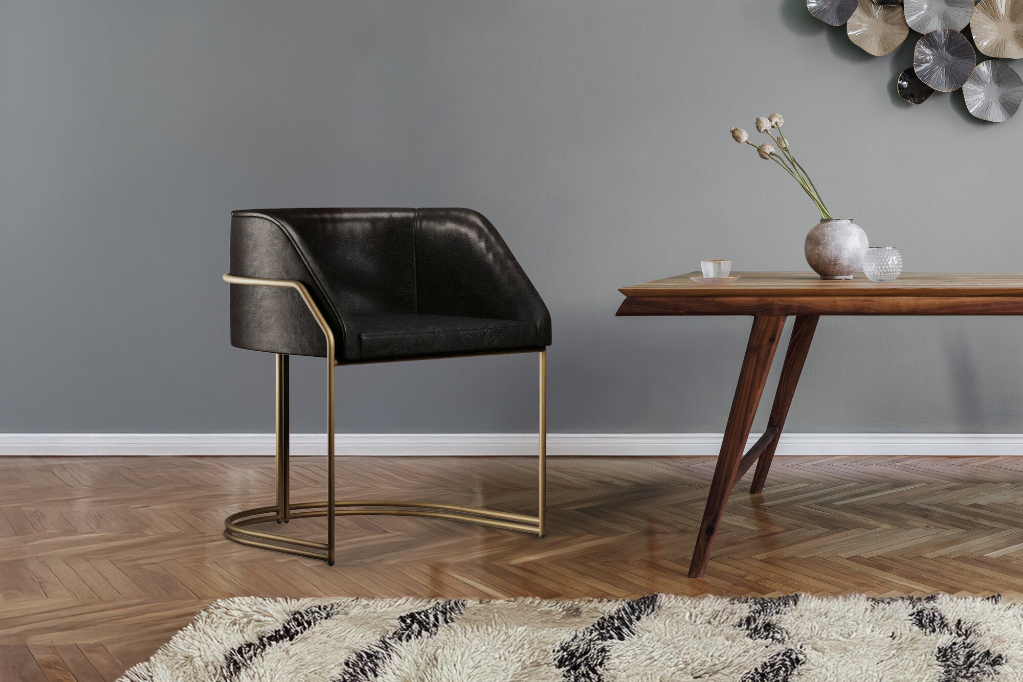 Introducing the Arabella Leather Dining Chair, where luxury meets comfort. Upholstered in sleek black leather with polyurethane foam padding, it offers both style and coziness. Crafted with a solid wood frame, it's built to last. It is finished with a layer of acrylic fiber for added durability and shine. Elevate your dining experience with the Arabella Leather Dining Chair—the perfect blend of elegance and practicality.