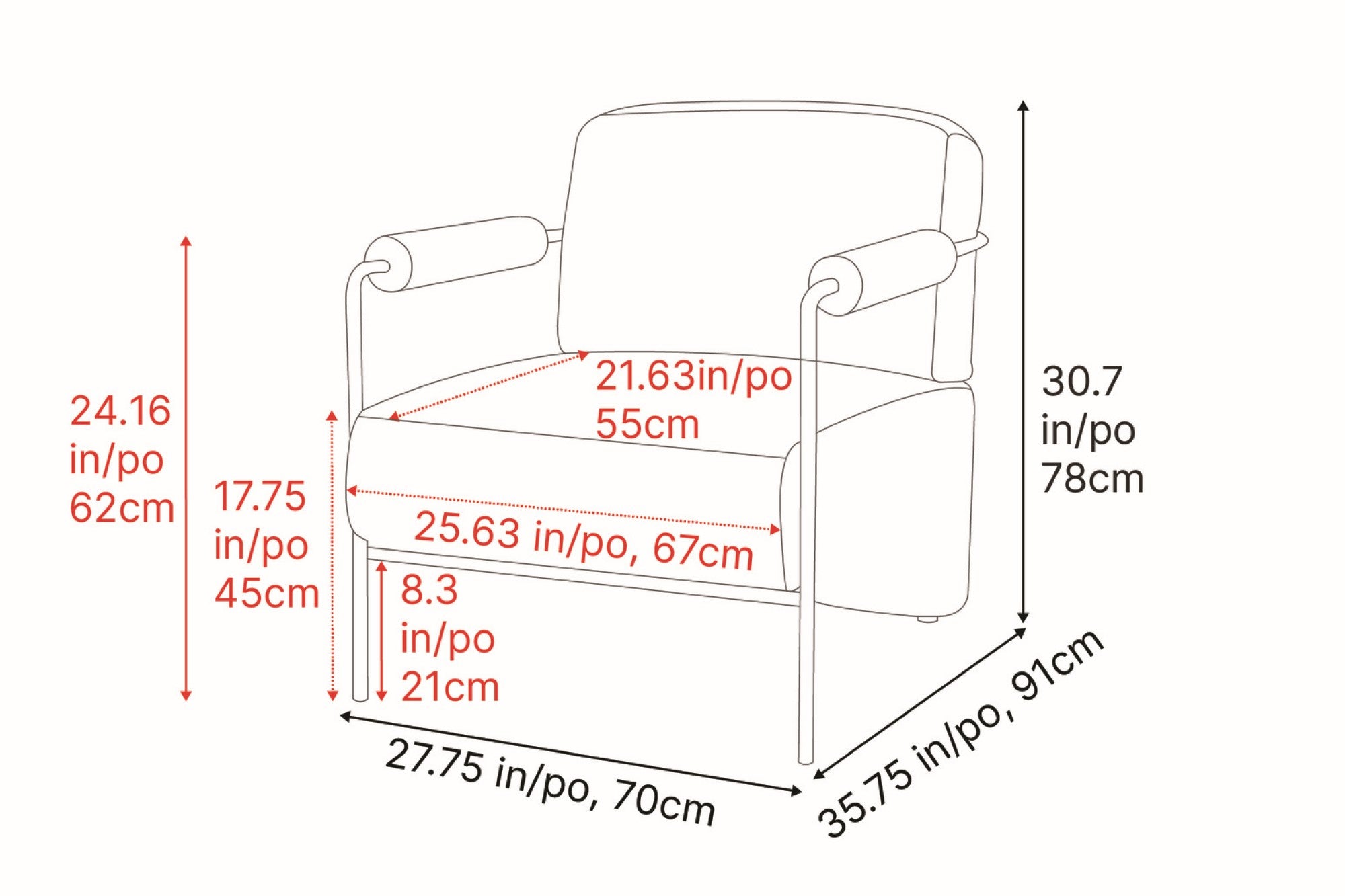 Introducing the Arianna Parisianne Velour Fabric Accent Chair - a captivating blend of style and comfort that makes a bold statement in any room. Its blocky back cushion, cylindrical armrests, and angled seat create a striking modern design that commands attention. Slim metal rods elegantly balance proportions, forming a seamless line from leg to back. Upholstered in luxurious Parisian Velour, it catches the light to create nuanced color shifts and adds a touch of sophistication to your space. Crafted with Kiln Dried Hardwood and black powder-coated steel rods, it offers both durability and contemporary allure. Experience Arianna's stylized look and incredibly comfortable sit - a perfect fusion of avant-garde aesthetics and inviting comfort for your space.