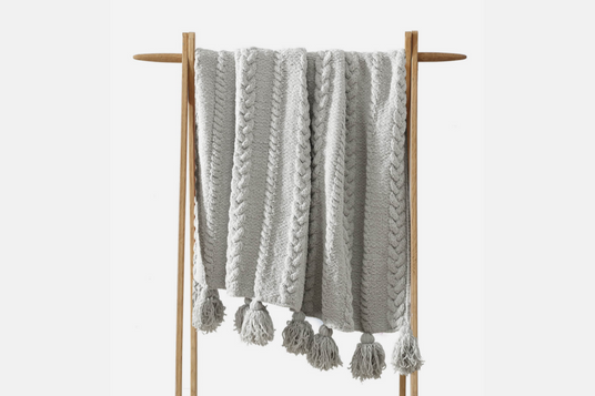 - Crafted from ultra-soft microfiber with a textured braided design and playful pom-pom accents, adding cozy style and inviting comfort to sofas, beds, or reading corners.