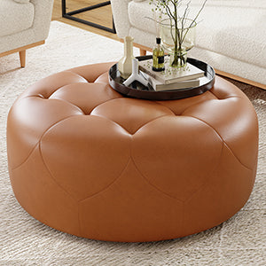 Brandy Round Full Leather Ottoman