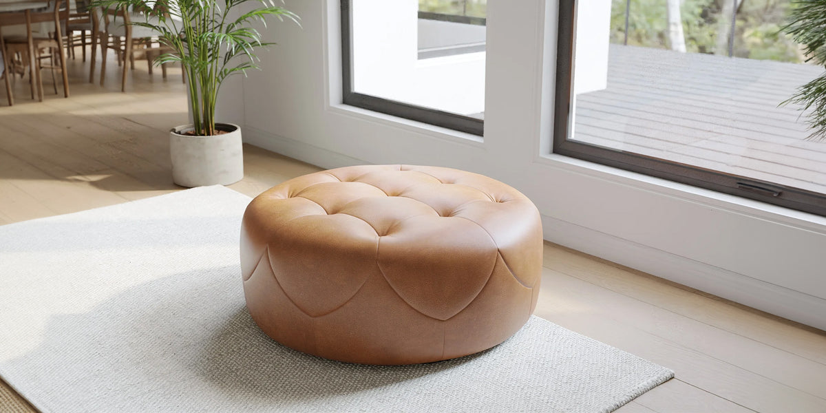 Brandy Round Full Leather Ottoman
