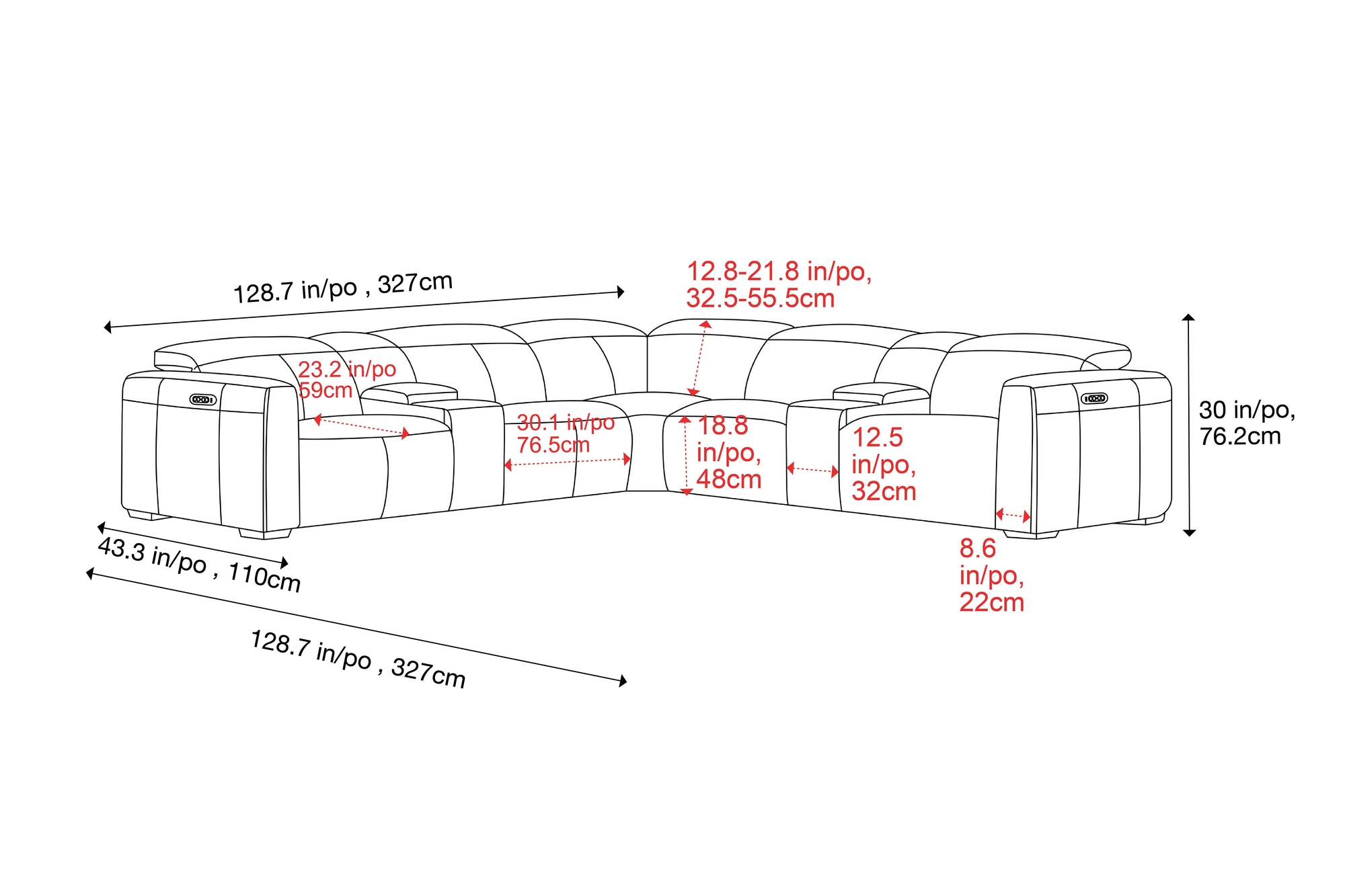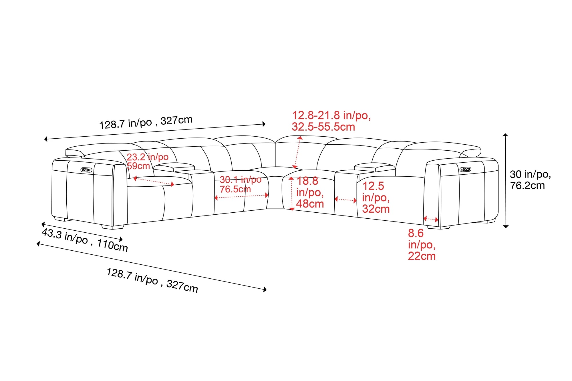 Experience unrivaled comfort with the Carmen Leather Modular Electric Reclining Sofa. Its gracefully curving armrests and supportive backrests promise indulgent relaxation, while the electric headrests and footrests offer personalized comfort at your fingertips. Wrapped in premium Italian Nappa 11000 Top Grain Leather upholstery, it adds an opulent touch to your living space. Take your comfort to the next level by choosing additional features such as storage consoles, wireless charging plates, and retractable drink holders. Elevate your lounging experience with Carmen, where the fusion of luxury and functionality sets a new standard.