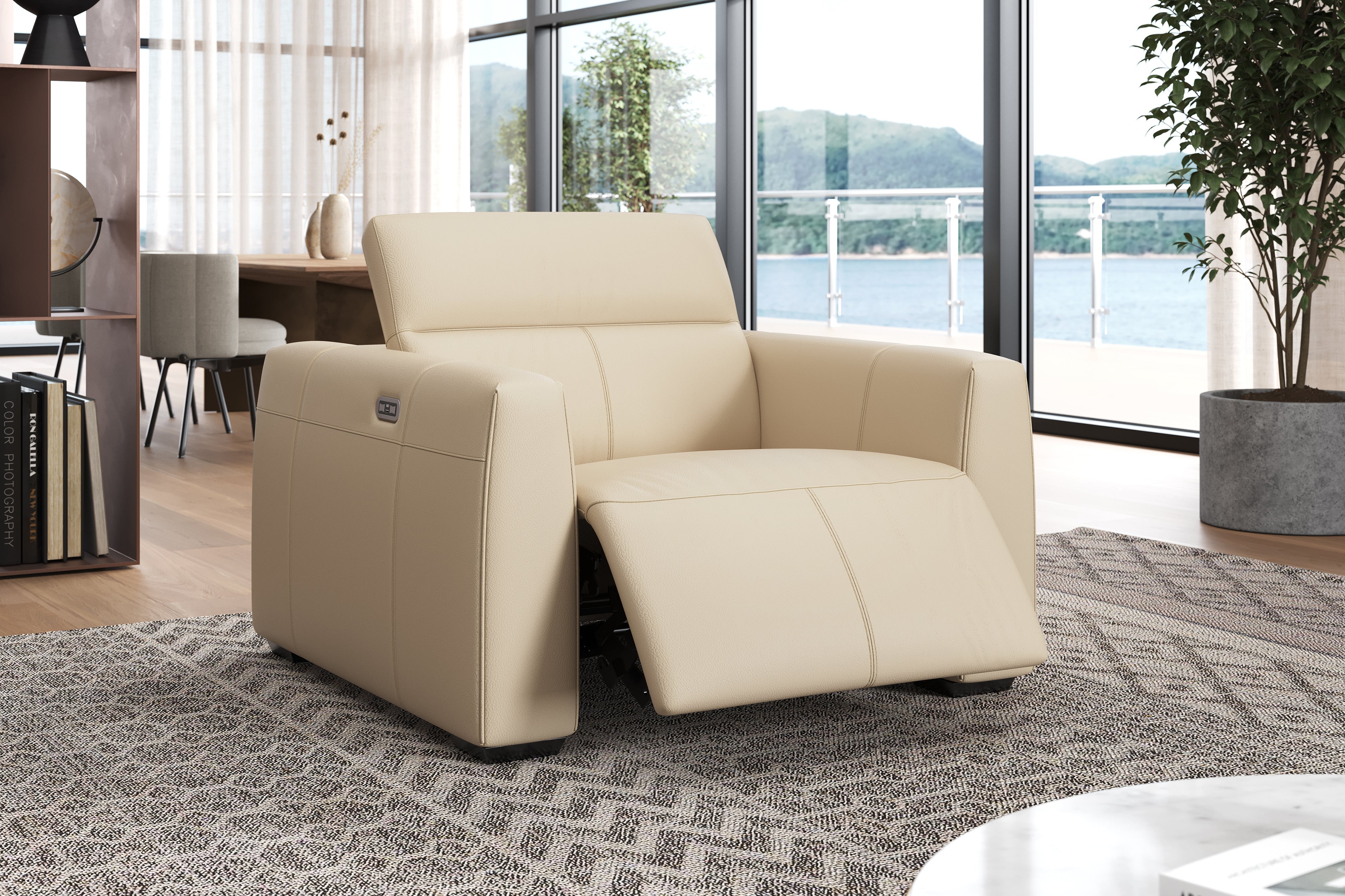 Indulge in unparalleled comfort with the Carmen Leather Modular Electric Reclining Sofa Accent Chair. Its gracefully curving armrests and supportive backrests promise opulent relaxation, complemented by electric headrests and footrests for personalized comfort at your fingertips. Wrapped in Italian Nappa 11000 Top Grain Leather upholstery adds a lavish touch to your living space. Elevate your lounging experience with Carmen, where the fusion of luxury and functionality redefines comfort.