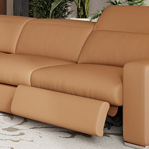 Introducing the Clara Leather Reclining Sectional Sofa, your ultimate comfort haven. Upholstered in luxurious Italian Nappa 11000 top-grain leather on all seating surfaces, it offers both style and durability. With two electric motion recliners and adjustable headrests, finding your perfect relaxation spot is effortless. Crafted with a sturdy kiln-dried wood frame and accented with exquisite heavy stitching, it's as durable as it is stylish. Elevate your lounging experience with the Clara Reclining Sectional Sofa — where luxury meets ease.
