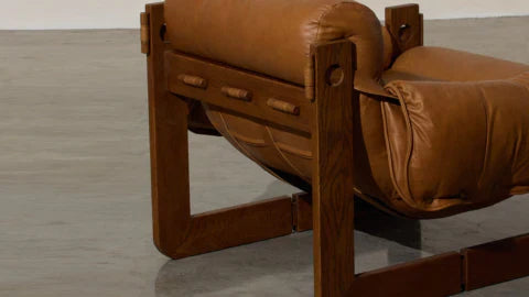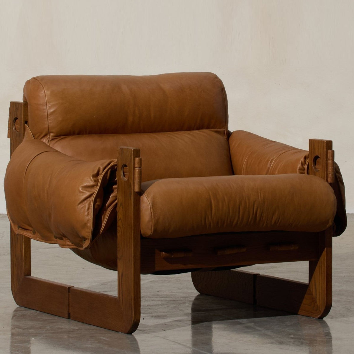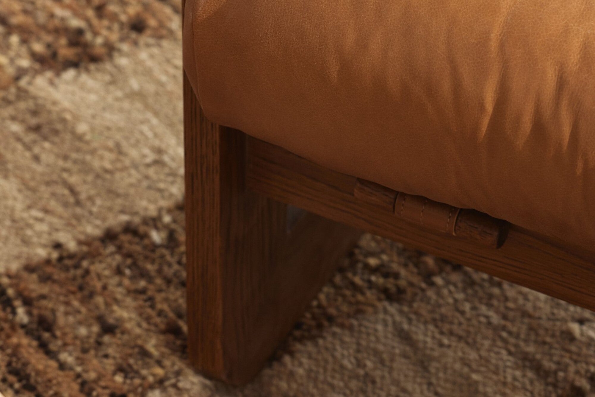 This Eddie Leather Armchair seamlessly blends bold design with luxurious comfort. Upholstered in premium full-aniline leather, it offers a rich, supple texture that enhances its refined appeal. The generously cushioned seat and backrest provide a plush retreat, while the sturdy oak wood frame ensures lasting durability and stability. Thoughtfully crafted with meticulous attention to detail, its sculptural form adds an architectural presence to any space. The combination of soft upholstery and robust materials creates a perfect harmony of elegance and strength.