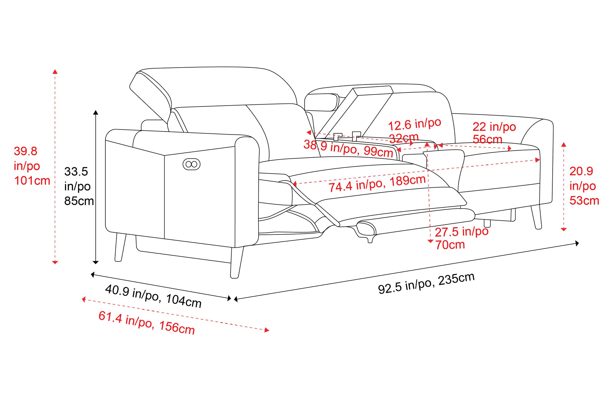 Dual Recliner Sofa with Console Dimensions