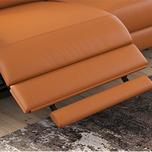 Introducing the Elodie Leather Sectional Sofa where style meets innovation and comfort. This contemporary piece is crafted from supple Italian Nappa 11000 Top Grain Leather and boasts elegance and practicality. Dive into relaxation with adjustable manual headrests and seamless electric recliners discreetly nestled within the sleek design. Engineered with an upscale Kiln-Dried Hardwood frame and light timber legs, it combines style and stability. Enjoy ultimate comfort with a supportive base suspension, high-density cushions, and convenient USB charger controls, granting individual adjustments for reclining and headrests. Experience sophistication and indulgence at its finest with the Elodie Leather Sofa.