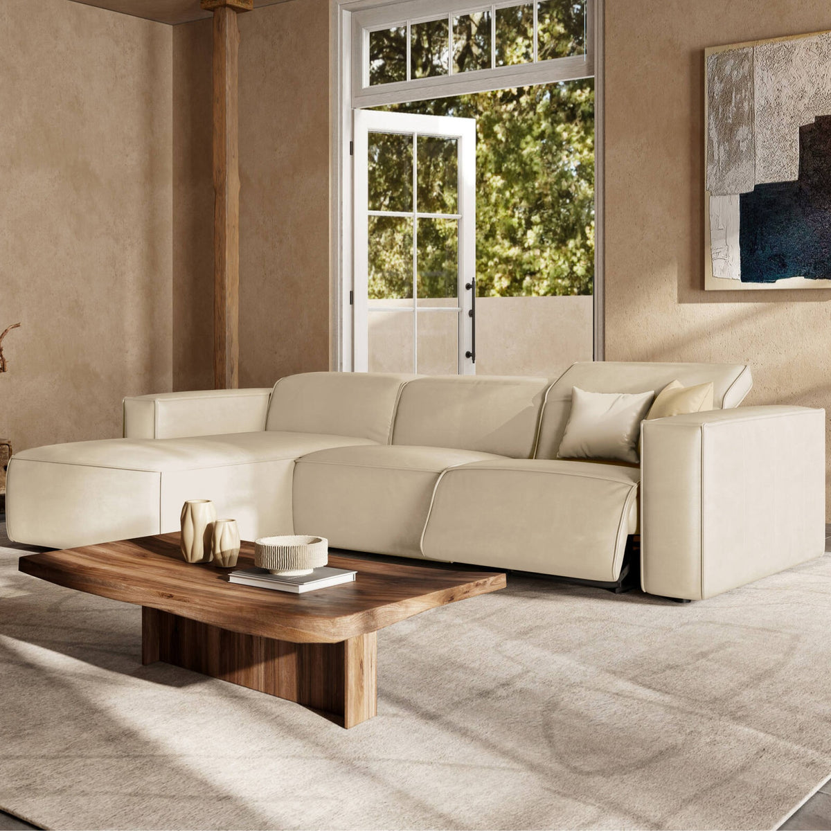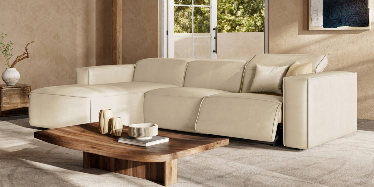 Indulge in Italian sophistication with Emery Premium Leather Sectional Sofa. This statement piece blends modernity with comfort, boasting a low-profile design that exudes sleekness. Dive into unparalleled relaxation thanks to its concealed recliners and manual adjustable headrests, ensuring absolute comfort without sacrificing style. Immerse yourself in the luxury of Italian Nappa 11000 Top Grain Leather upholstery that exudes elegance and durability. The Emery Sofas offers versatile configurations, including options for electric recliners and manual adjustable headrests, delivering a tailored experience to suit your preferences and space. Elevate your living with the ultimate blend of style, comfort, and craftsmanship - welcome home to Emery.