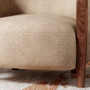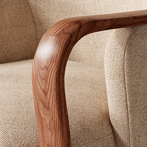 - Introducing the Emma Wood Accent Chair: A captivating fusion of style, comfort, and masterful craftsmanship.