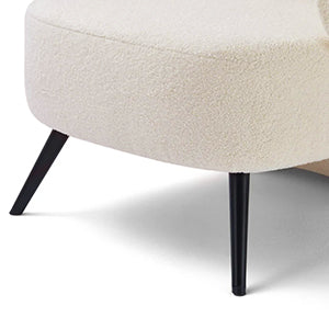 Indulge in the sheer luxury of our exquisite boucle single decorative chair. With sleek black steel legs and a sturdy hardwood frame, Erica is a true masterpiece of craftsmanship that effortlessly blends style and substance. Designed with curved armrests seamlessly integrated with the backrest, this chair embodies the perfect fusion of aesthetics and ergonomics. Sink into the high-density foam cushions, providing unparalleled support and comfort, making every sitting experience a delightful escape. Whether it's a cozy reading nook, a chic accent in your living room, or a statement piece in your bedroom, Erica's timeless design effortlessly complements any decor, adding a touch of sophistication to your space.