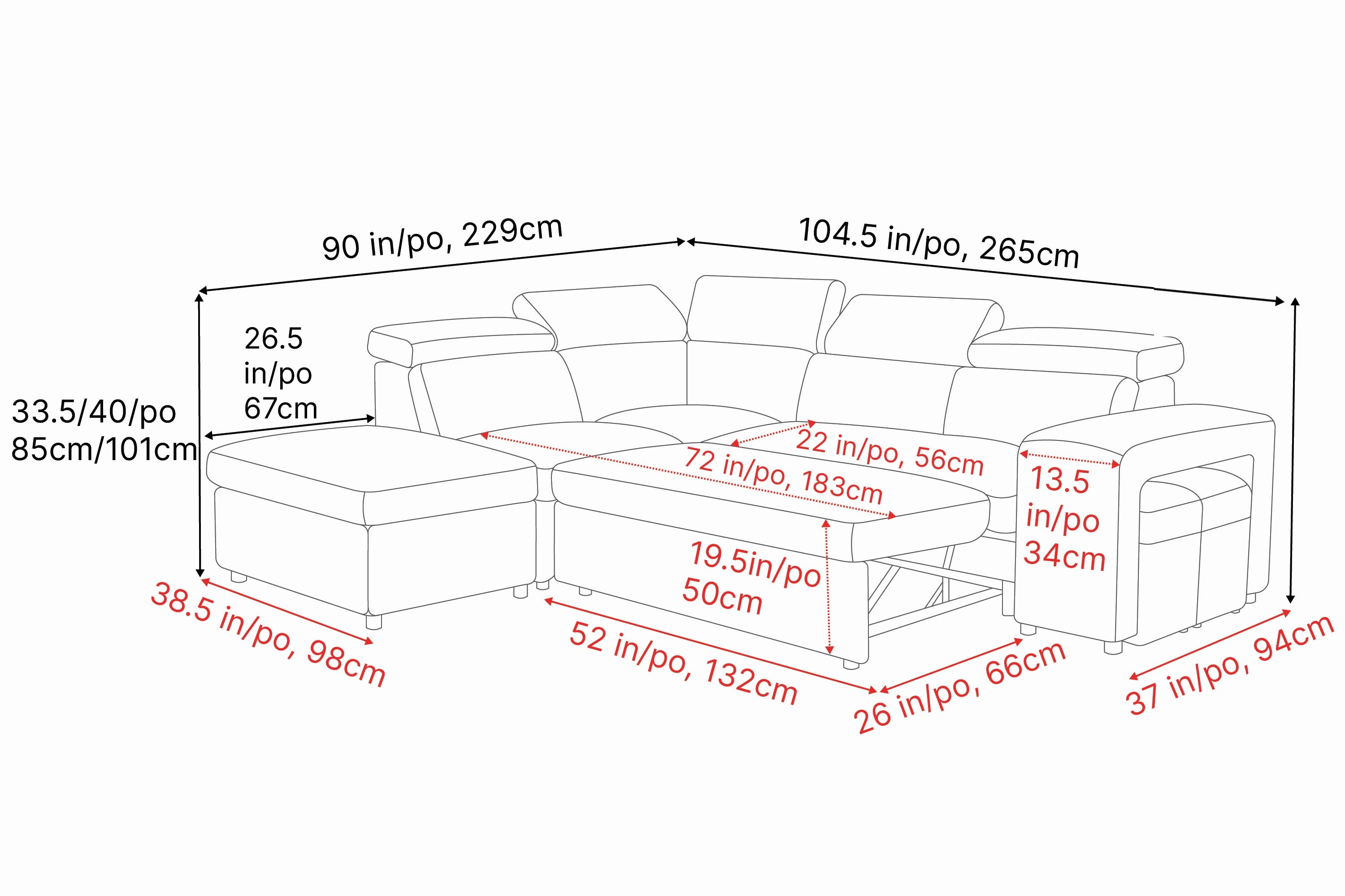 This fabric couch boasts a host of hidden features—built in hidden storage, two additional bar seats and a pull out bed. With the ample storage space conveniently tucked away beneath the seat, you can declutter your living area and keep essentials within easy reach. If you need additional seating, you can easily pull out the bar seats to give more guests a place to sit. If the need arises, you can then easily transform the Finn fabric sectional sofa into a comfortable bed, accommodating overnight guests with ease. Embrace the versatility and beauty of the Finn, and elevate your living space to new heights of style and practicality.