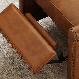 This recliner boasts premium Italian Nappa 11000 top-grain leather, a kiln-dried hardwood frame, and solid wood legs for durability. Its manual recliner feature and roll arm design with nailhead accents add convenience and sophistication. With loose cushions and down-blend-wrapped cushions for comfort and no-sag steel sinuous springs for support, it offers both luxury and longevity. Timeless in design, it effortlessly complements any decor style, making it a versatile and stylish addition to any space.