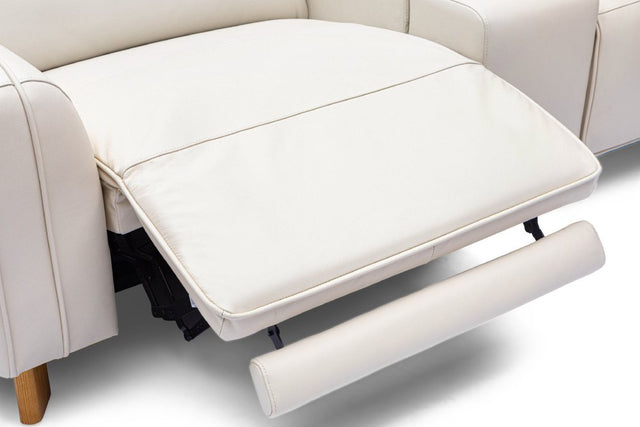 The Lesley Leather Single Recliner Seat combines luxury and comfort with ease. Wrapped in high-quality Italian Nappa 11000 Top Grain Leather, it adds style to any room. The sturdy kiln-dried wood frame ensures durability. With powered zero-gravity reclining and adjustable telescopic headrests, you can comfortably relax. A built-in control panel with USB and Type-C charging ports keeps your devices powered. The seat cushions are soft foam with polyester fiber, while the backrest has a cozy feather-filled design, matching the sofa’s ash timber legs for a complete look.