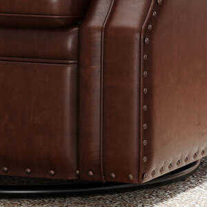 The Liam Leather Recliner Chair, cloaked in a luxurious Lipari Chocolate shade, stands as a resplendent testament to modern furniture design's artistry and craftsmanship. Its English roll arm offers a classic touch, elegantly balancing the blend of past and present aesthetics. Integrated with a swivel mechanism, the chair offers a full 360° rotation, ensuring dynamic functionality without the distractions of tilting or rocking. For those seeking relaxation, its manual recline is seamlessly incorporated, requiring a mere 18" clearance from the wall for a complete recline, allowing you to effortlessly transition into a state of repose. Beneath the rich exterior, the cushions, wrapped in premium polyester, provide a firmer, enduring comfort. And while they are fixed to maintain the chair's form and structure, they ensure a consistent seating experience.