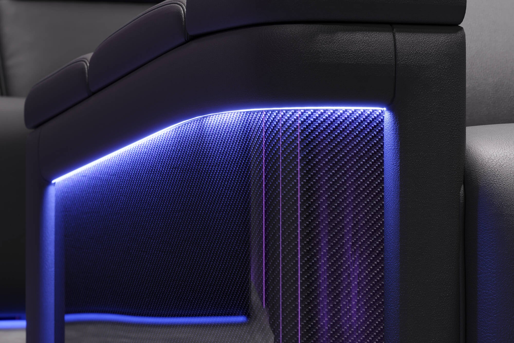 Crafted for those who demand nothing but the best, the 2025 New Monza is a masterpiece of comfort and style. Its sleek design, featuring carbon fiber arm detailing, embodies a sense of velocity and modern sophistication while ensuring lasting durability. Enveloped in Premium Matte Semi-Aniline 15000 Nappa Leather, the 2025 Monza pampers you with lavish comfort. At the same time, its motorized functions offer a tailored viewing experience. Beyond its aesthetics, the new Monza boasts a memory control panel for seamless adjustments and immersive RGB LED lighting, transforming your home theater into a haven of luxury. Let the new Monza redefine your entertainment space, where every moment becomes an unforgettable cinematic experience.