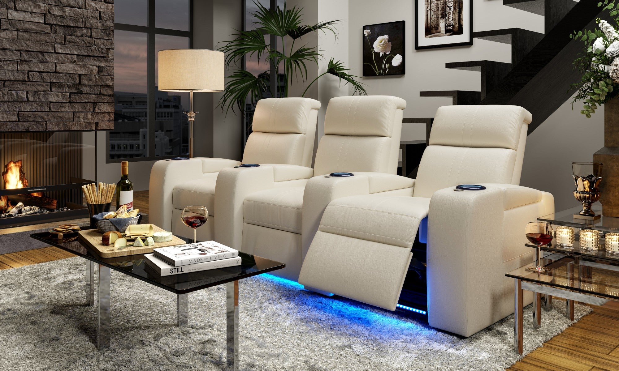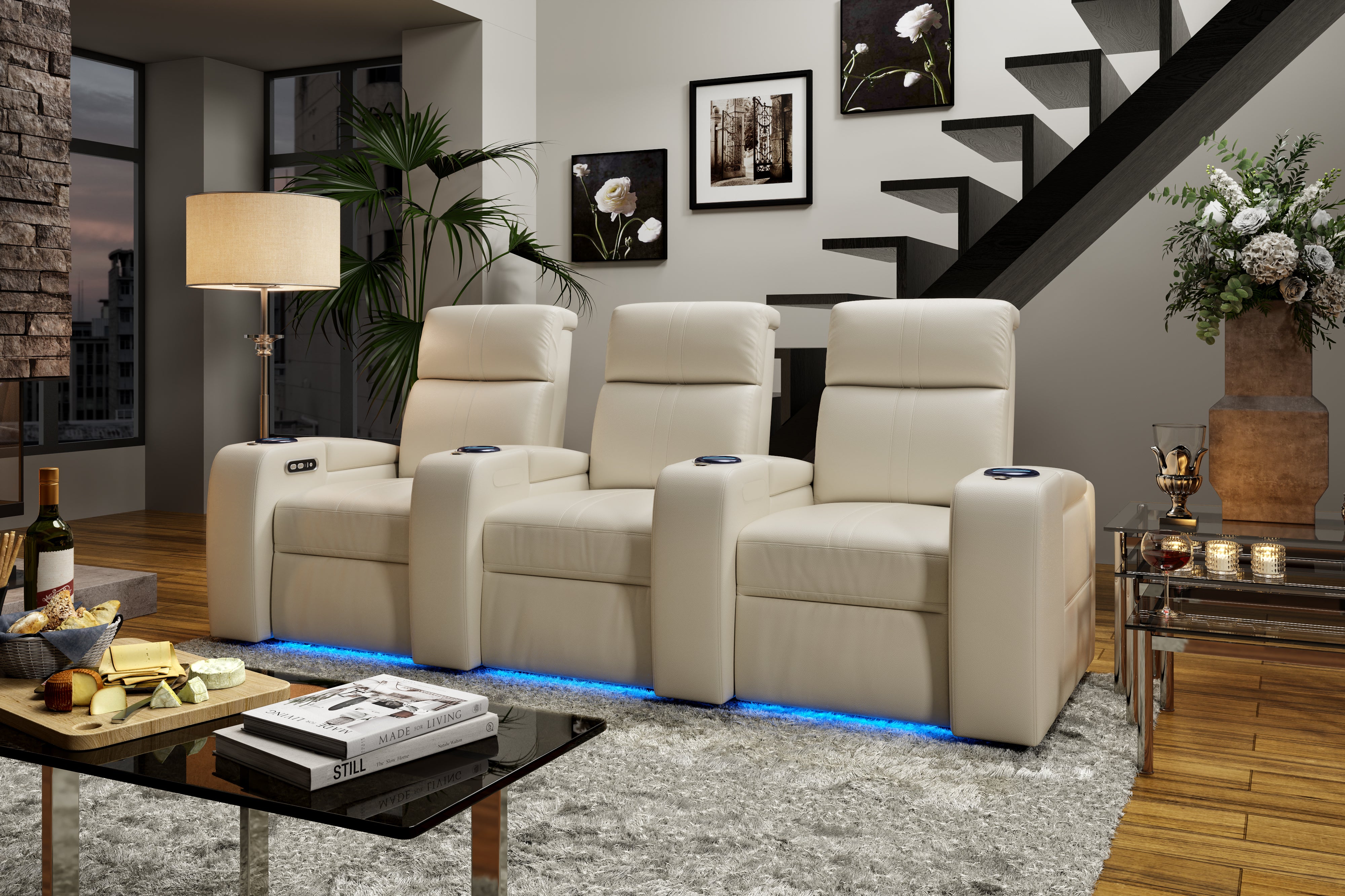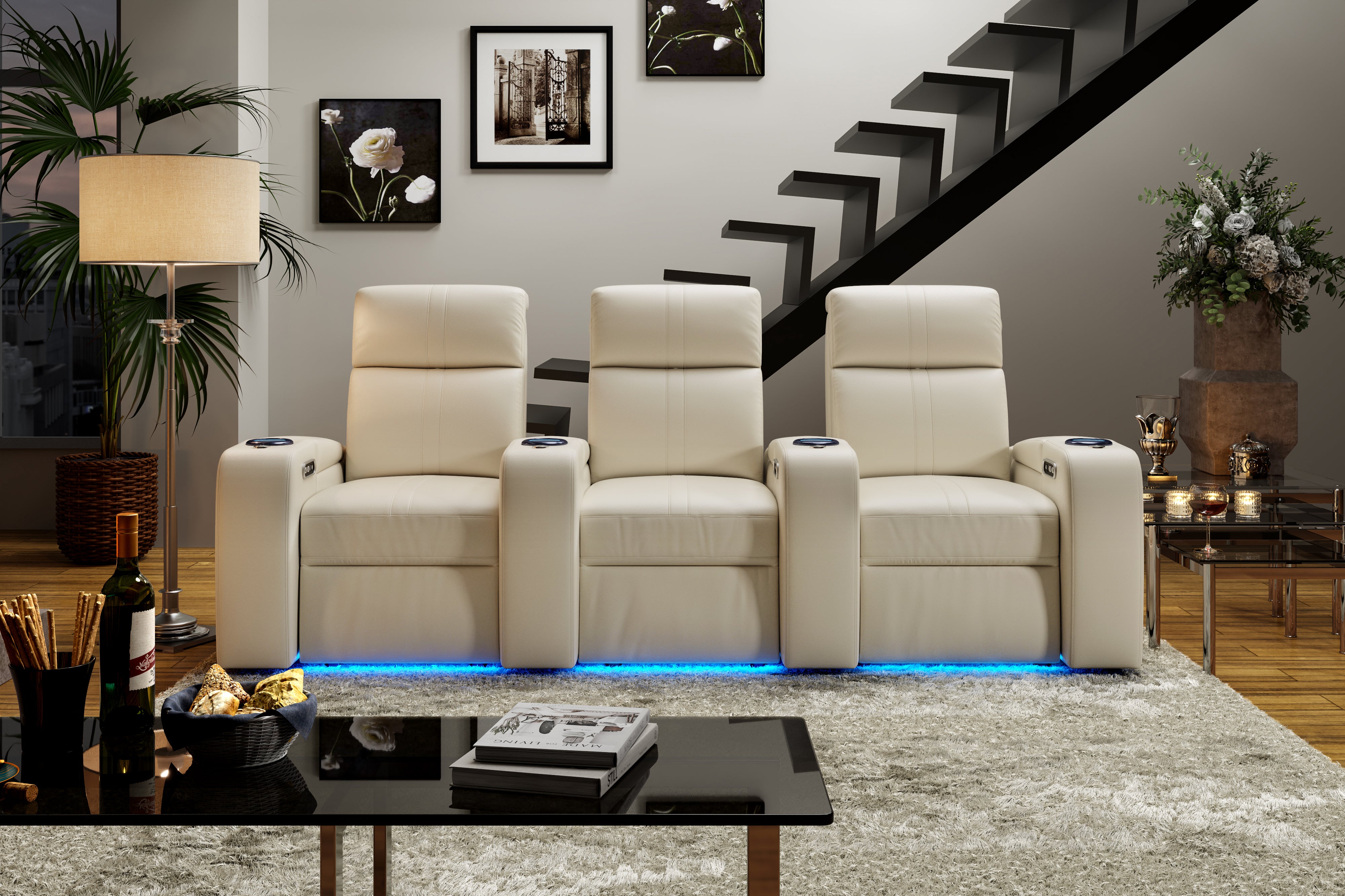 - Immersive Cinematic Experience: Elevate your movie nights with ambient LED lighting that sets the mood and hidden storage compartments to keep your devices conveniently close at hand.