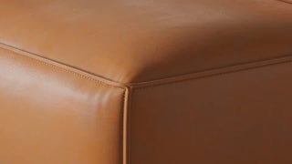 Introducing Nathan Leather Ottoman - the perfect addition to any décor. With its classic design, luxurious full aniline leather upholstery, and comfortable semi-firm seats, you can snuggle up and enjoy the plush feather padding while lounging peacefully. Customize your configuration by adding individual pieces from the same collection.