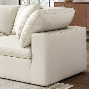 Introducing the Ophelia Cloud Fabric Modular Sectional Sofa: where cloud-like comfort meets style effortlessly. Crafted with a kiln-dried wood frame and premium fabric upholstery, it offers durability and luxury. Experience the superior comfort of its high-density foam seat cushions creating a supportive yet plush feel. The back cushions provide exceptional support, enhancing your relaxation experience. It's a perfect blend of cloud-inspired elegance and functionality. Upgrade your living space with the Ophelia Cloud Fabric Modular Sectional Sofa today and experience the bliss of cloud-like comfort and style.
