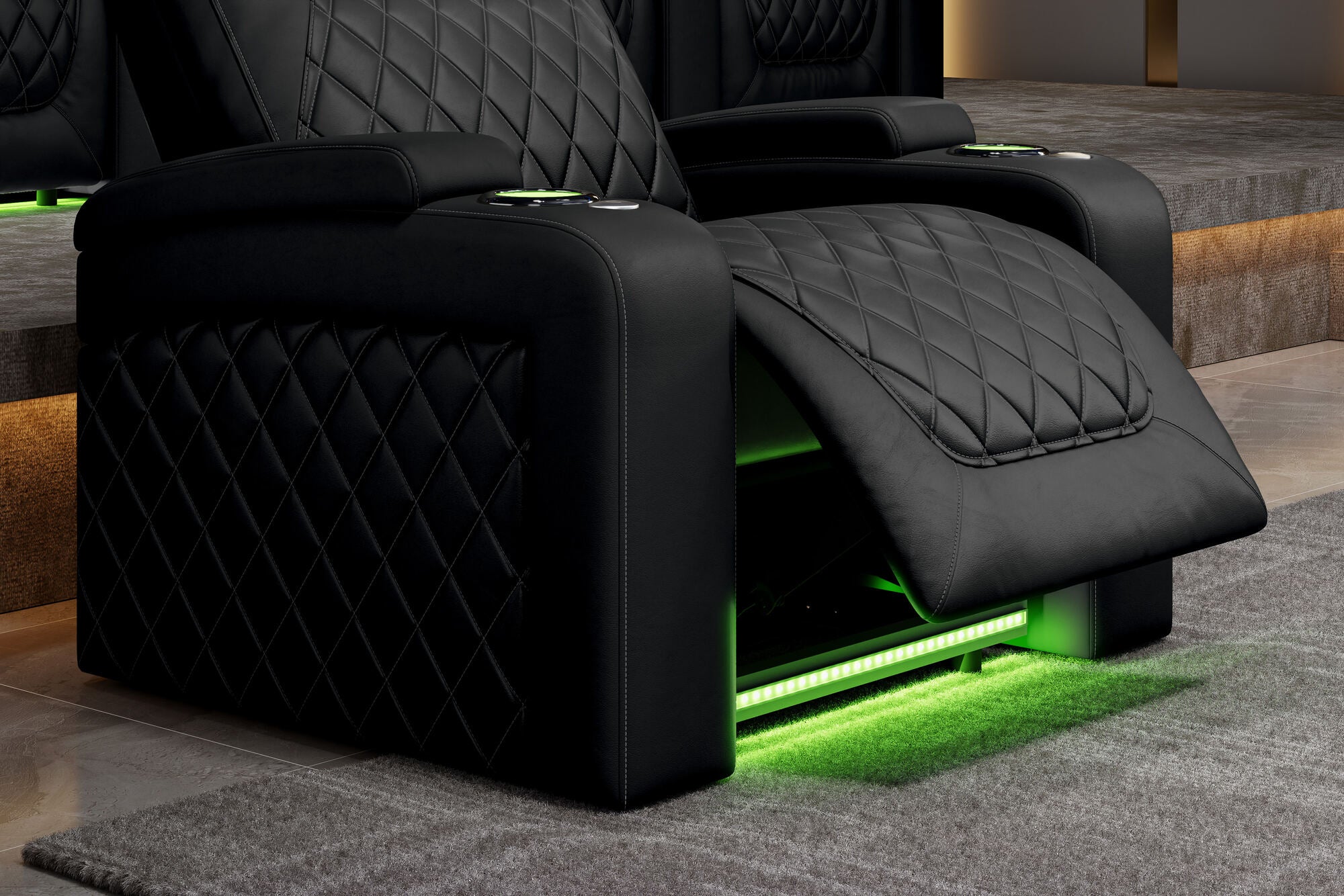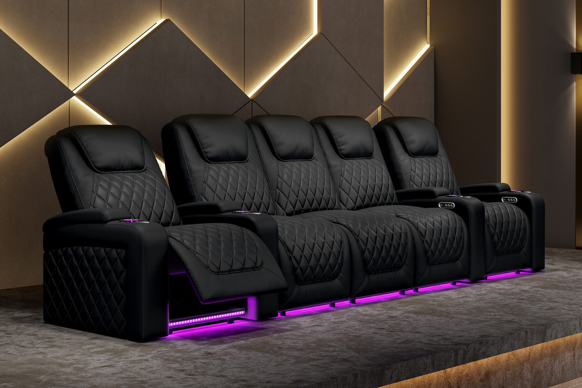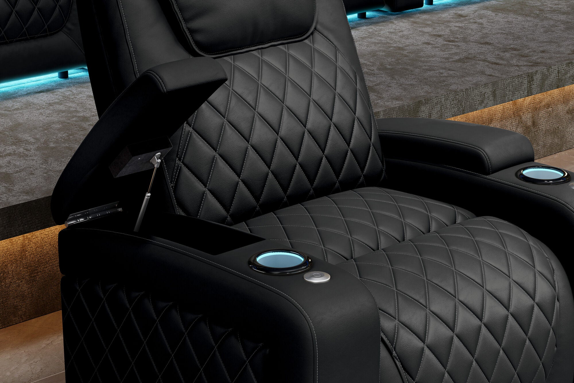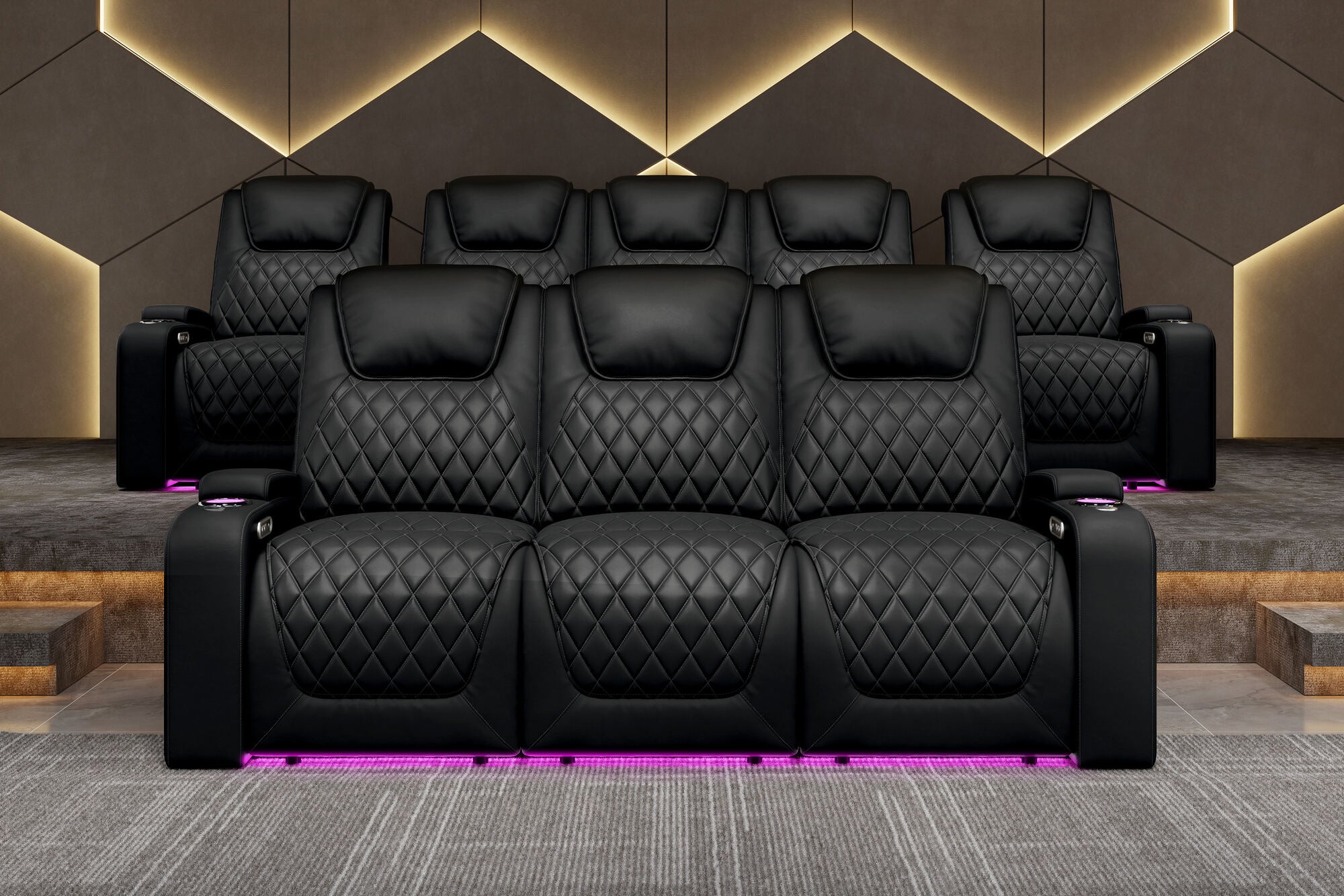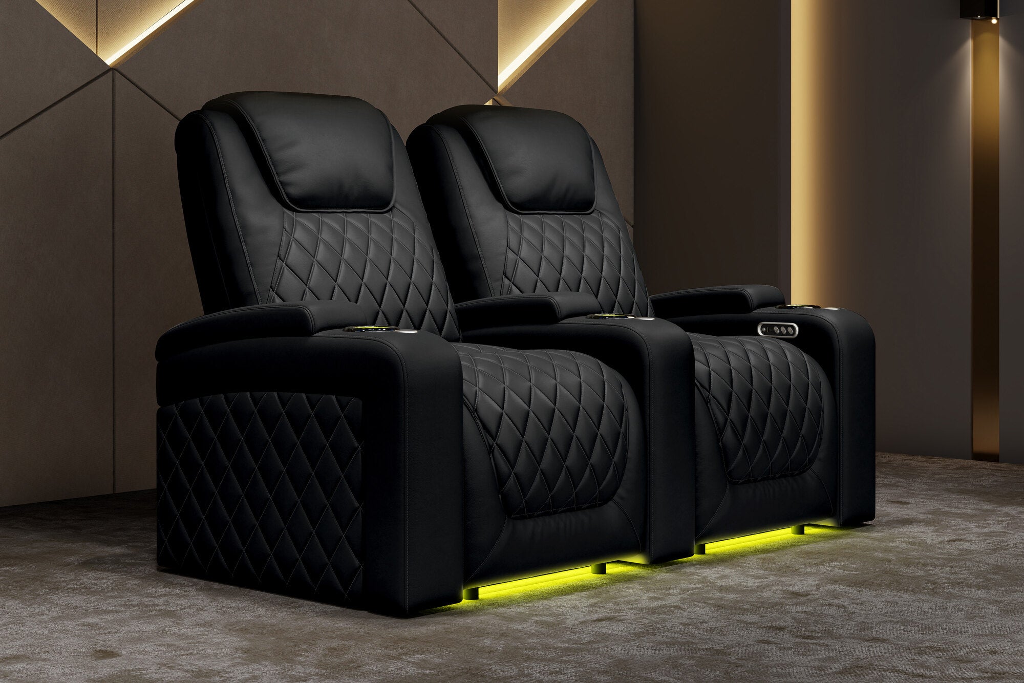 - This elegant diamond-quilted stitching detail complements your home theatre with a regal aesthetic while enhancing ergonomic comfort with added softness and support.