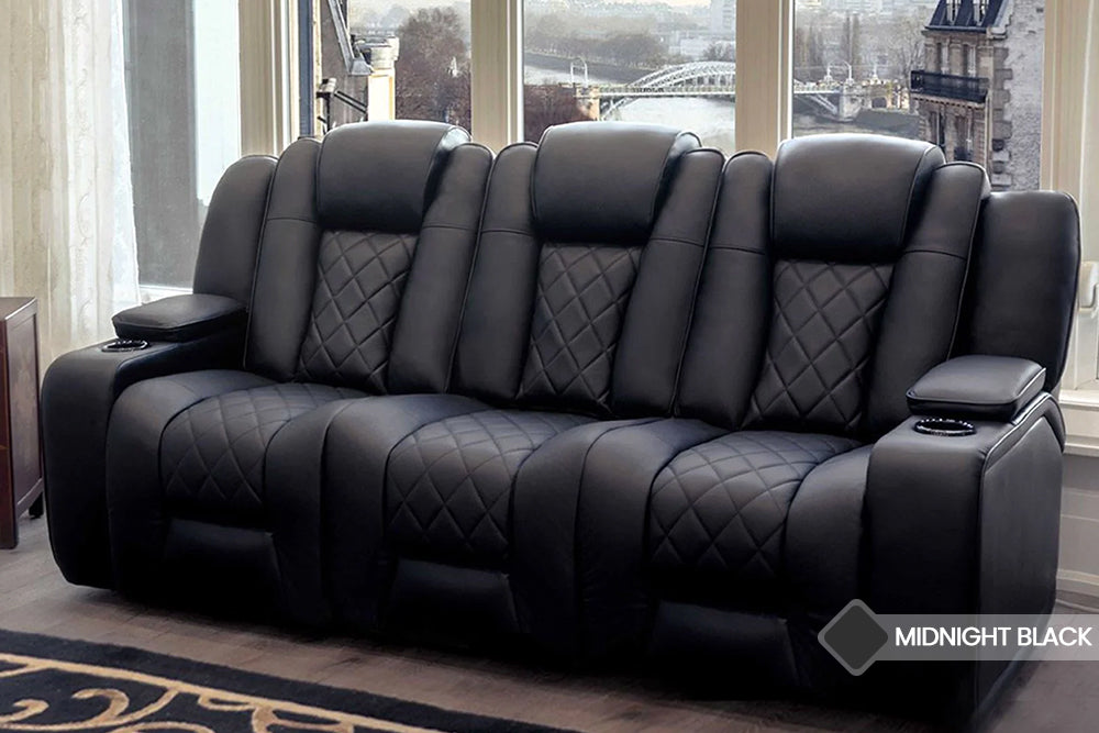 Combining design and function, the Oxford provides luxury through its supple leather, cozy cushions, supportive headrest and a center console that holds your favorite glass of wine and food platter. Both the left and right end seats are full power recliners with power headrest adjustability. Customization is possible so tailor as you see fit and enjoy the ultimate home theater experience with the Oxford.