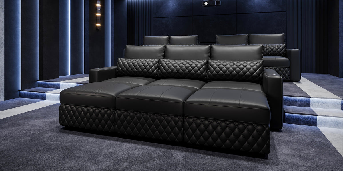 Whether you're hosting a movie night or enjoying some quality downtime, this luxurious seating arrangement ensures a premium cinematic experience from the comfort of your home. The sleek lines and flawless stitching are testaments to the meticulous craftsmanship that went into its creation. The velvety softness of the Top Grain Nappa 11000 Leather caresses your senses, evoking a profound sense of indulgence and luxury. Experience the epitome of elegance and emotion with the Valencia Pisa.