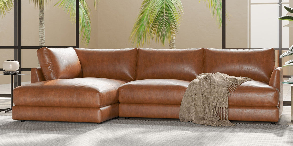 Indulge in luxury and sophistication with our Italian Nappa 11000 top-grain leather sofa, impeccably upholstered for elegance and style, elevating any space with its premium allure. Designed for ultimate relaxation, its low-slung silhouette beckons you to sink into the sumptuously padded seat, embraced by plush, padded arms for added coziness. Stretch out and unwind on the chaise, tailored for leisure and relaxation, offering ample space to sprawl and luxuriate in comfort. Crafted with precision, the specially treated leather withstands pet scratches, ensuring durability without compromising style. Experience unmatched comfort and style with our meticulously designed leather sofa, enhancing your lounging experience and elevating your home decor to new levels of luxury.