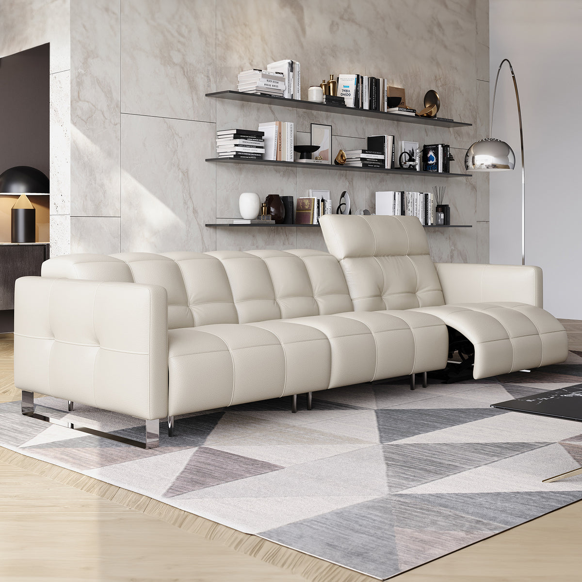 - Tailored Relaxation: Experience personalized relaxation with power recliners on both sides of the sofa, complete with flip headrests for customizable comfort tailored to your preferences.