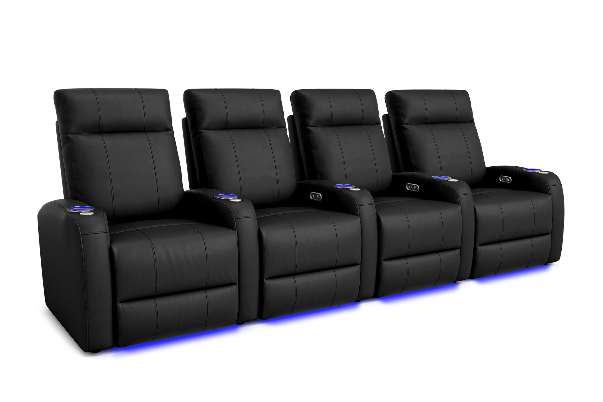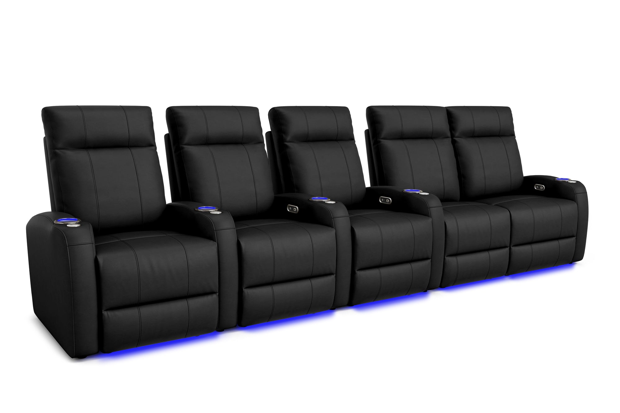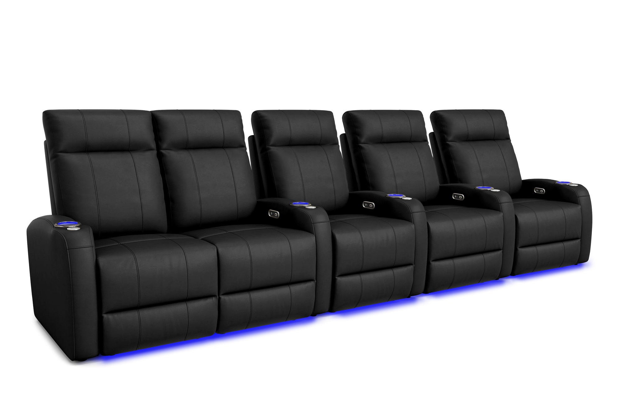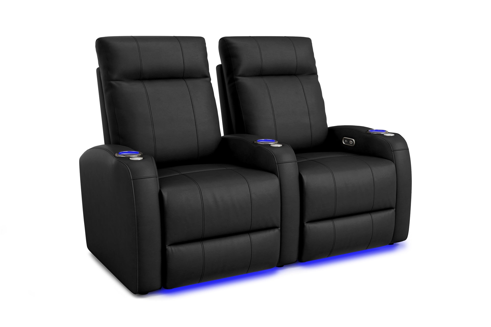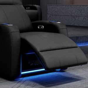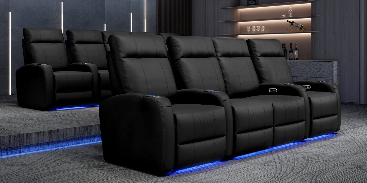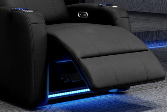 Incredibly sleek, slim, and comfortable, the 2025 Version of Syracuse is designed to give you plenty of space in your home cinema without sacrificing comfort. The 2025 Syracuse reclining home theater chairs comes with LED cup-holders, ambient base lighting, premium top grain 9000 leather on all seating surfaces, and motorized recliner mechanisms. The 2025 New Syracuse will immerse you into your viewing experience like no other leather-upholstered theater chair has before.