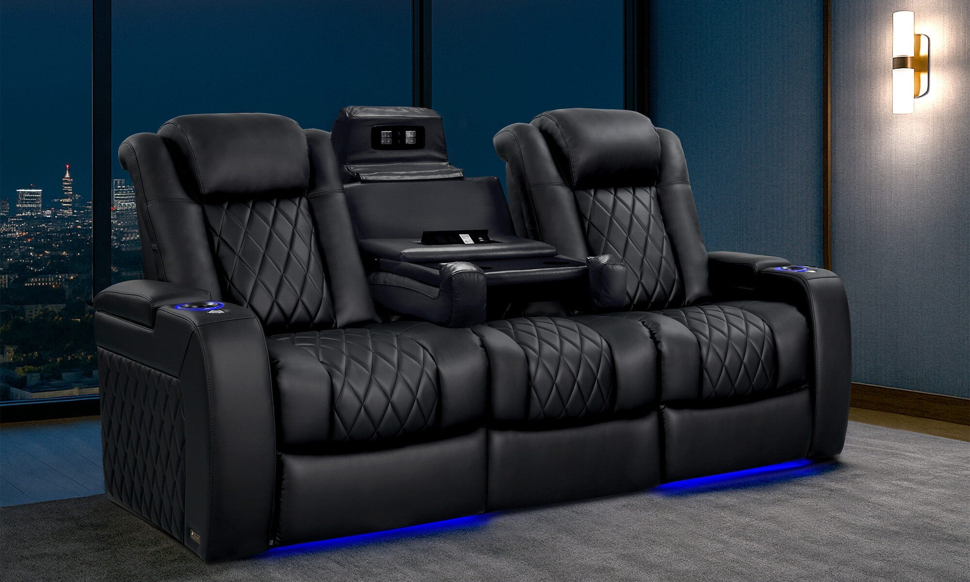 - Upgraded LED cup holders and ambient lighting provide easy drink access in the dark while creating a refined, cinematic atmosphere.