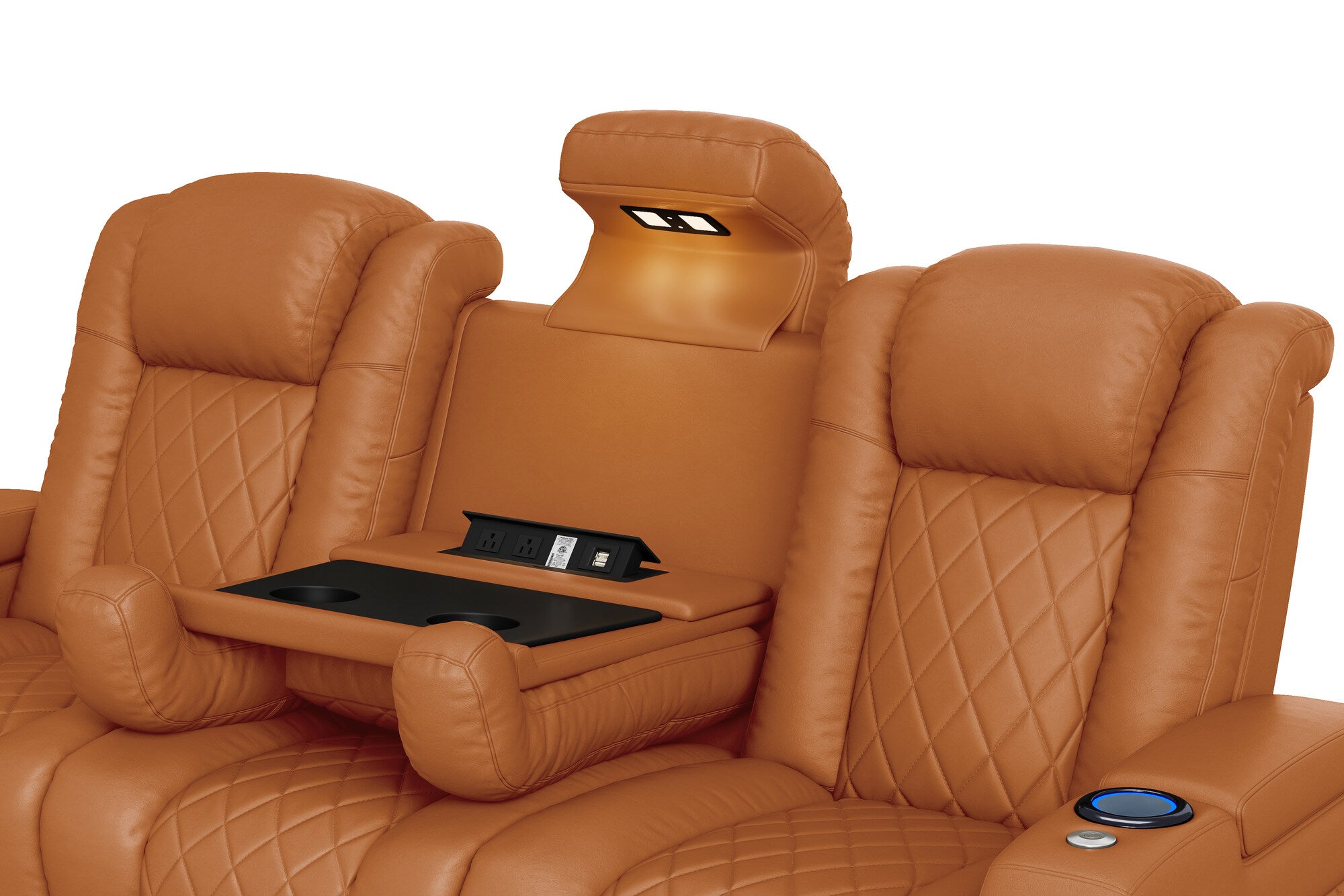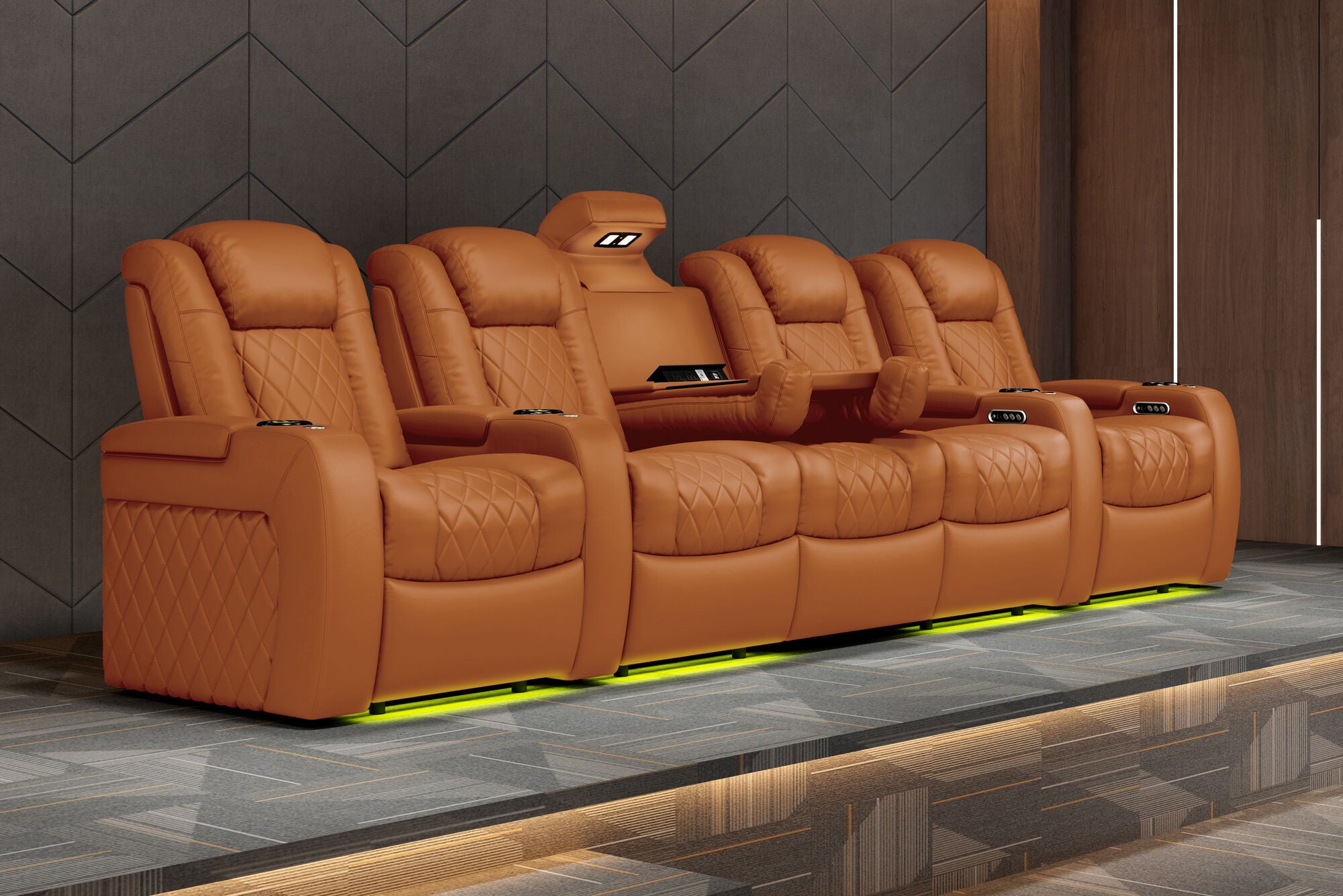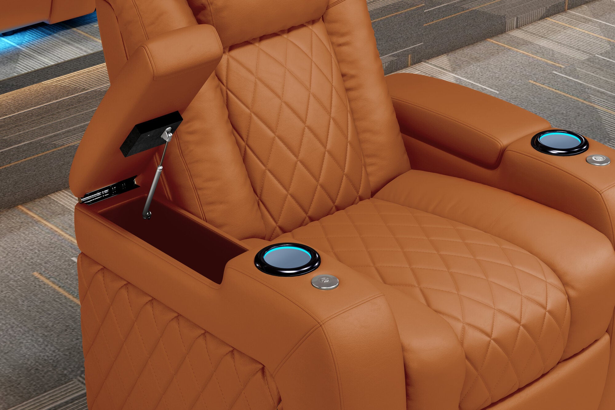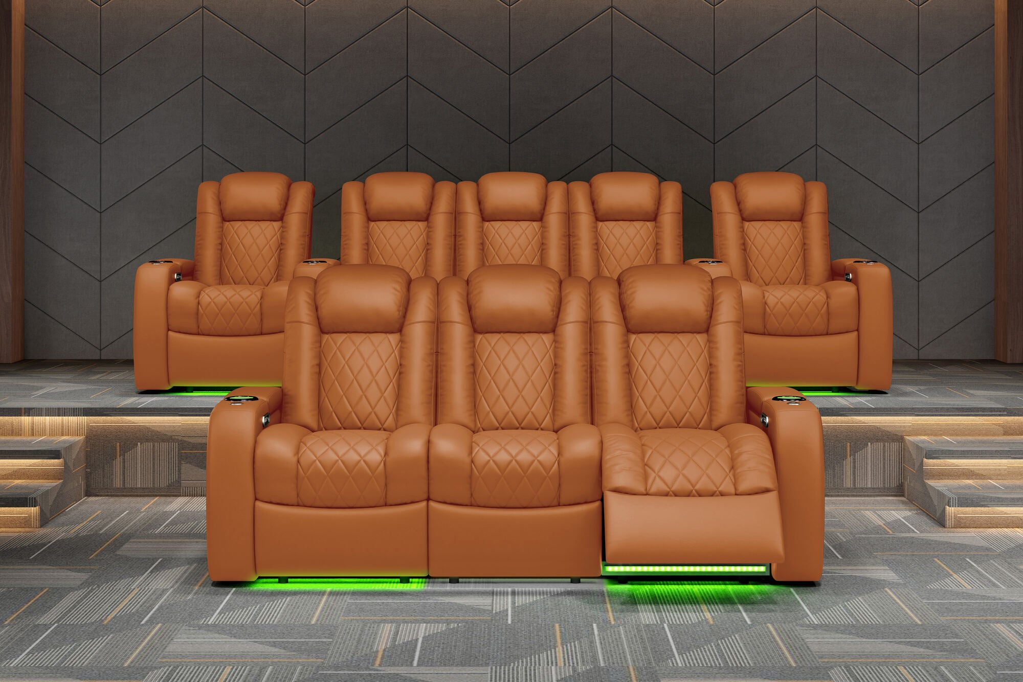 Introducing the Tuscany Console Home Theater Seating! Upgrade your home theater with the brand new Tuscany Console with upgraded technology and cutting-edge comfort, A perfect blend of luxury, style, and comfort. Enjoy immersive movie nights with new RGB cup holders with ambient base lighting, and a motorized reclining system that lets you find your perfect seating position effortlessly.