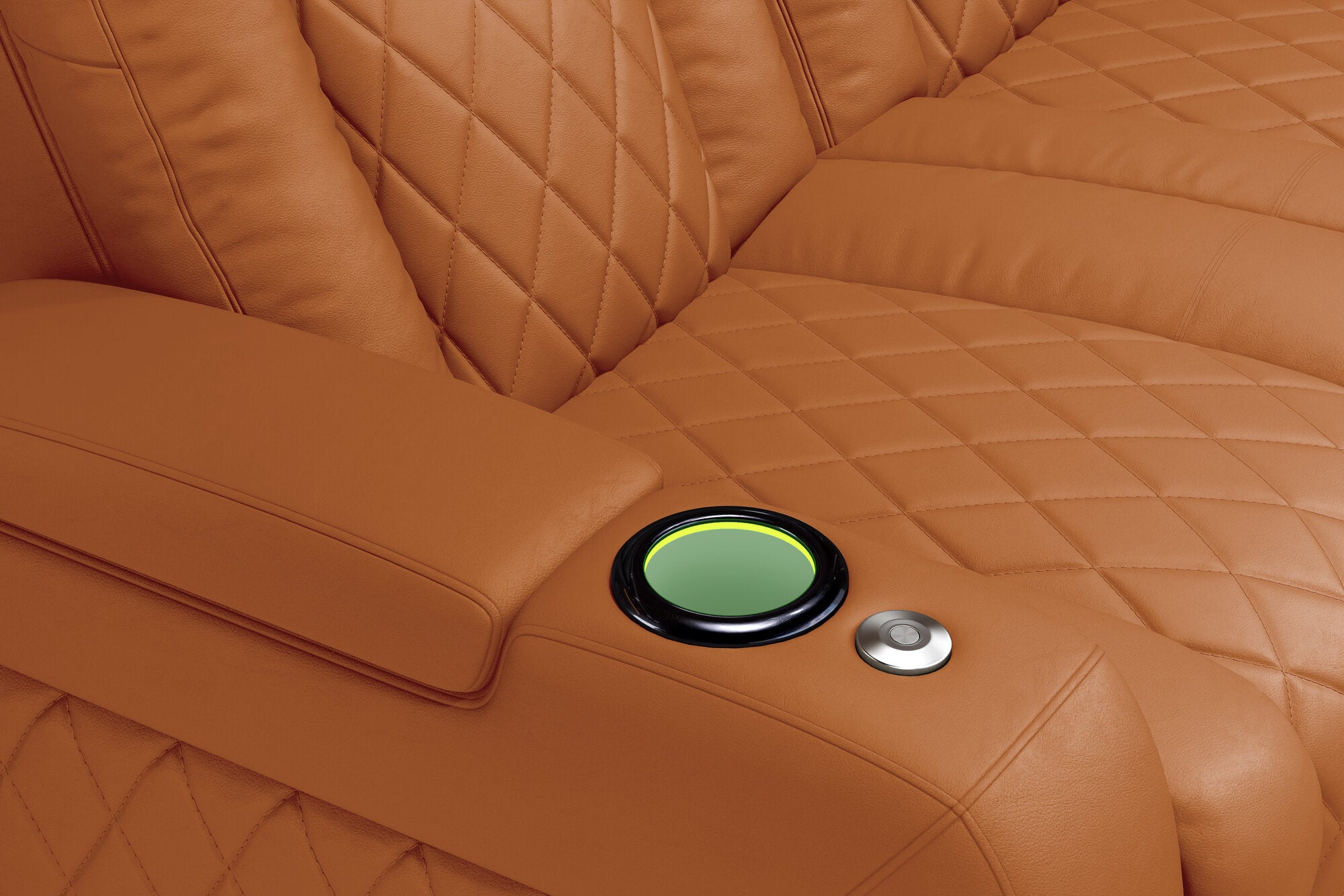 Combining design and function, the New Tuscany Console provides luxury through its supple leather, cozy cushions, supportive headrest and a middle non-recliner center console that holds your favorite glass of wine and food platter. Both the left and right end seats are full power recliners with power lumbar and headrest adjustability. Customization is possible so tailor as you see fit and enjoy the ultimate home theater experience with the Tuscany Console.