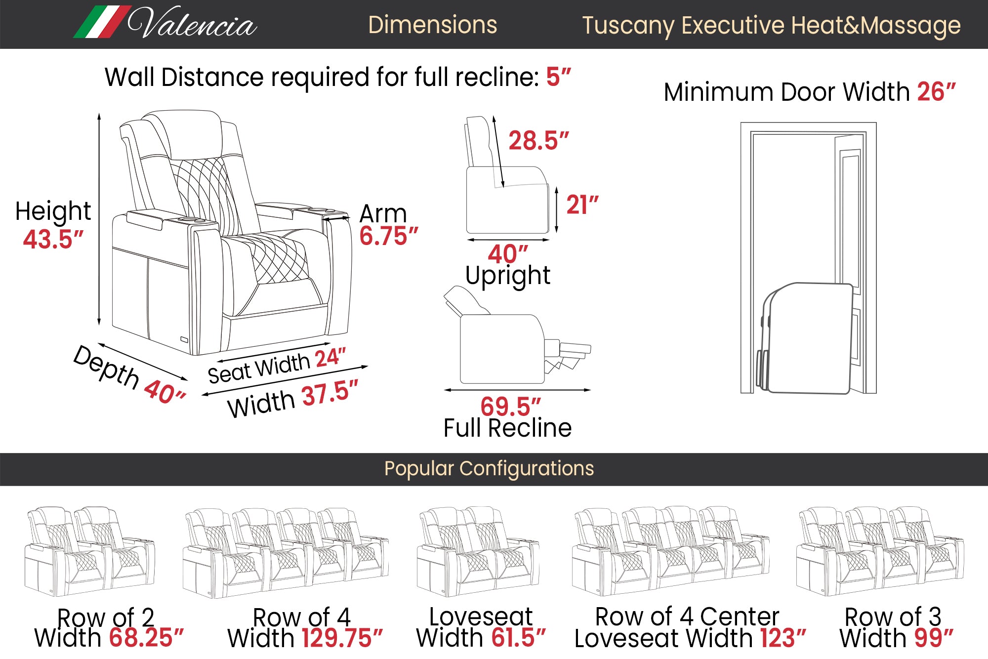 Tuscany Executive Theater Seating – Heat & Massage