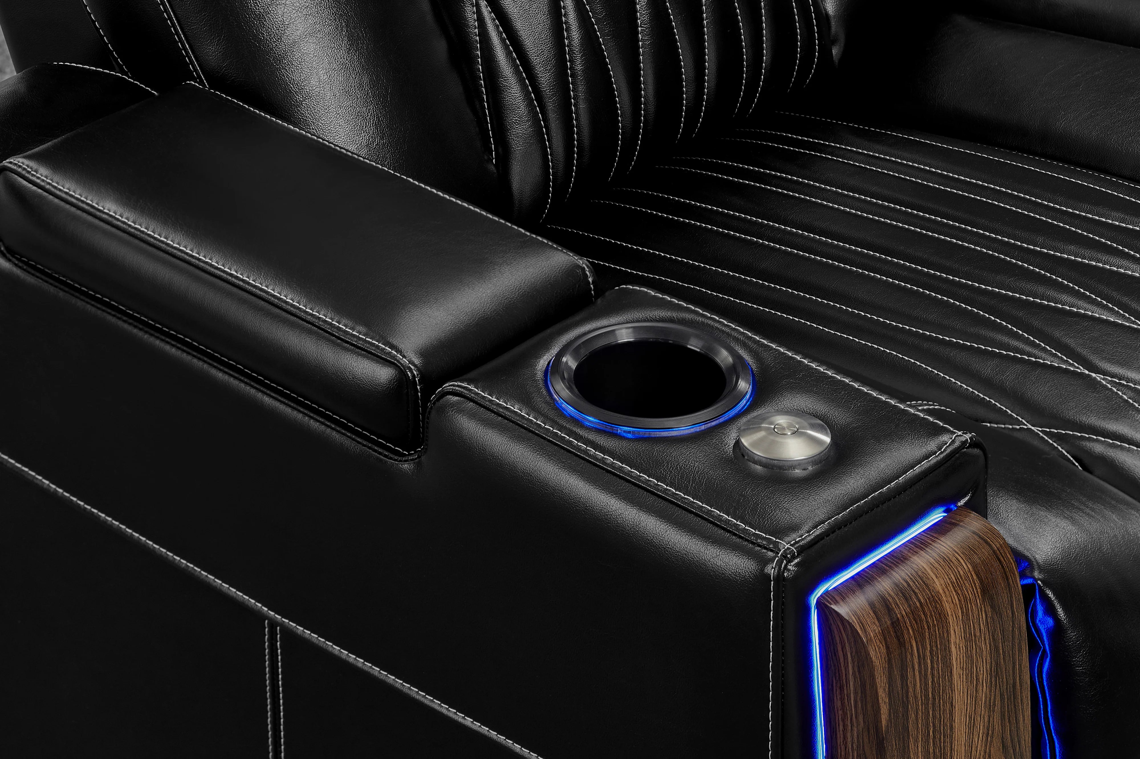 - Backlit Walnut wood grain arm finish.