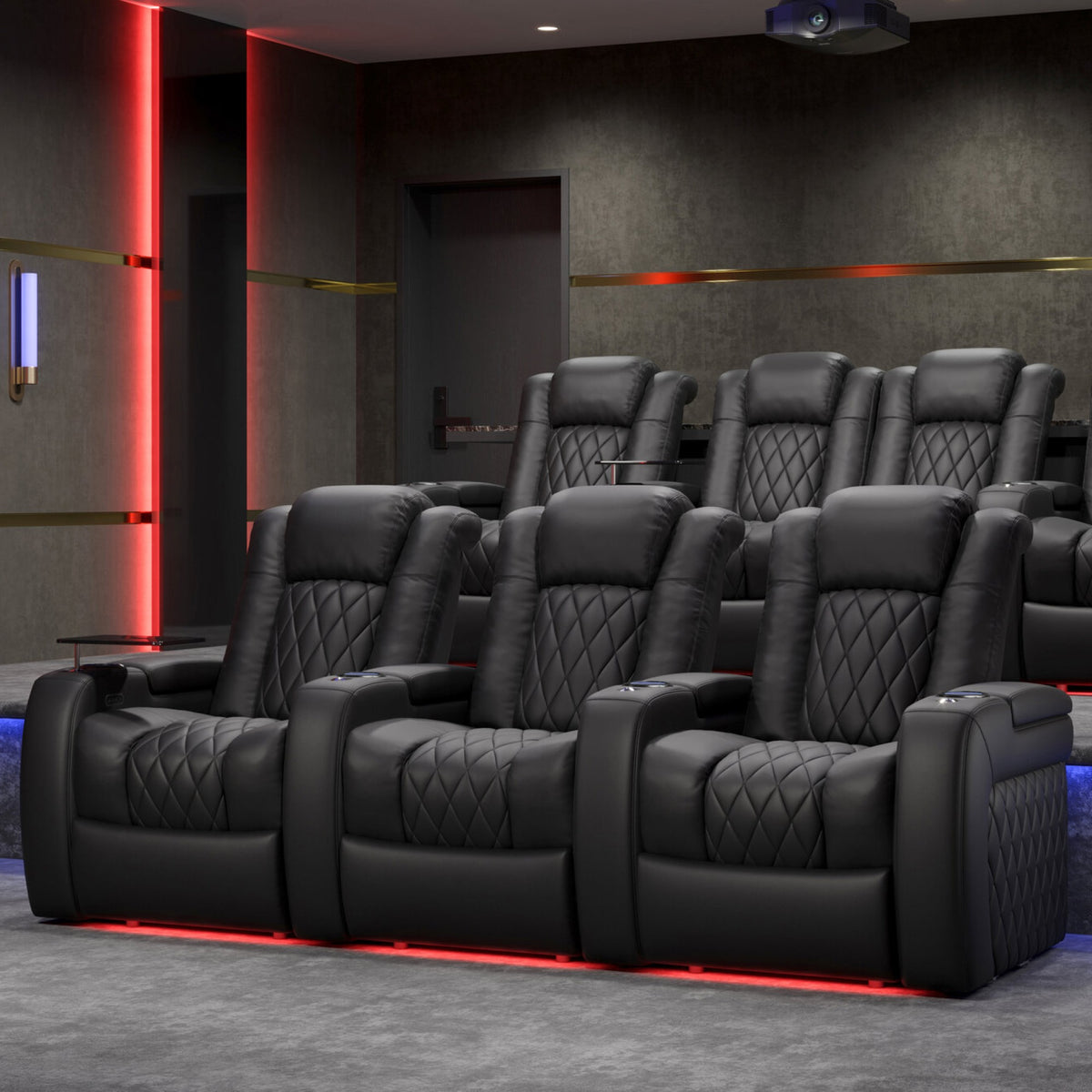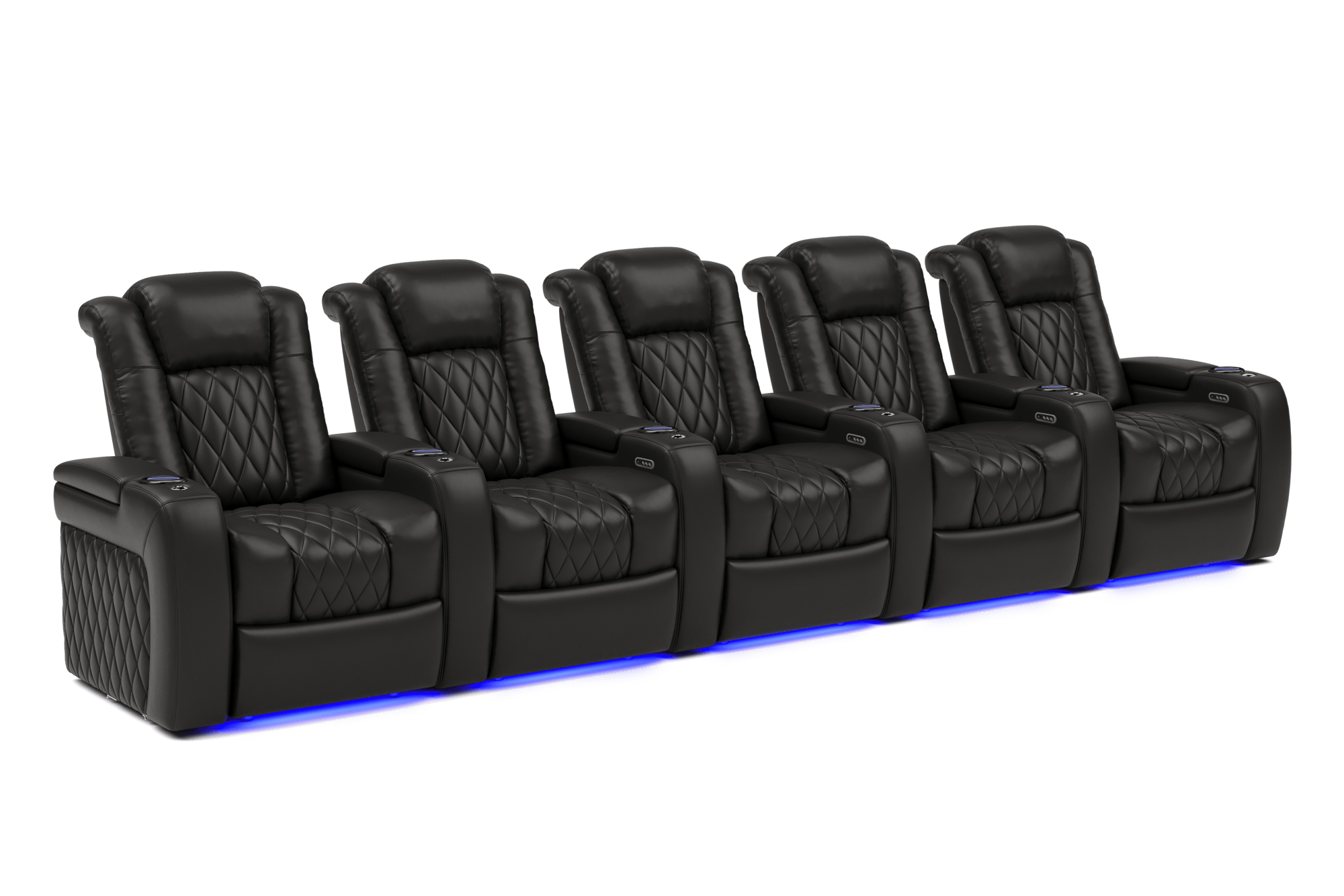 Valencia 2025 New Tuscany Italian Leather Home Theater Seating Row of 5, Midnight Black