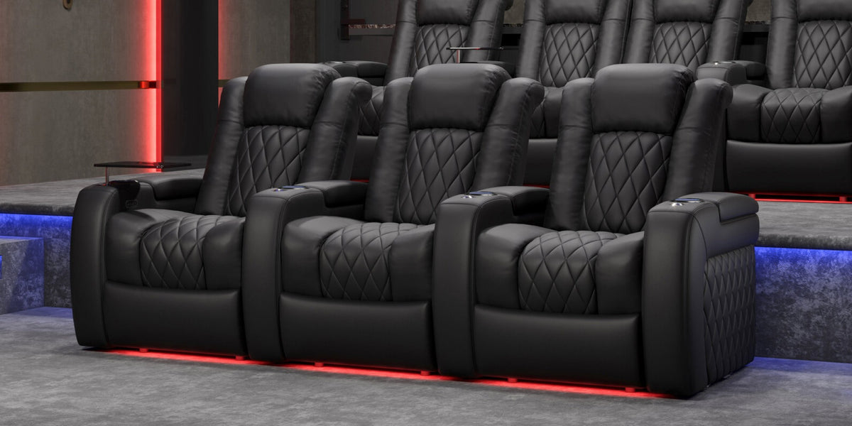 A unique combination of style, comfort, and luxury, the Tuscany makes it possible to get the most out of your movie nights with friends and family. With LED cup-holders, ambient base lighting, premium Italian top grain Nappa leather 11000 on all seating surfaces, and motorized recliner mechanisms, the Tuscany allows you to experience your home theater the way you have never experienced it before.