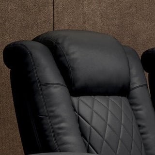 - Features power-adjustable lumbar support, headrest, and recline for personalized relaxation.