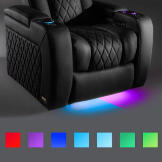 Enjoy immersive movie nights with new RGB cup holders with ambient base lighting, and a motorized reclining system that lets you find your perfect seating position effortlessly.
