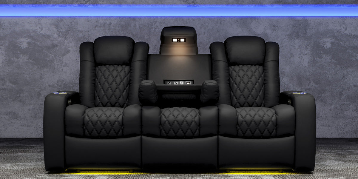 Combining design and function, the Tuscany XL Luxury Console provides luxury through its supple leather, cozy cushions, supportive headrest and a center console that holds your favorite glass of wine and food platter—the essential entertainment room seating accessories for a great time. Both the left and right end seats are full power recliners with power lumbar and headrest adjustability. Customization is possible, so tailor as you see fit and enjoy the ultimate home theater experience in an entertainment room seat that is the epitome of comfort with the Tuscany XL Luxury Console.
