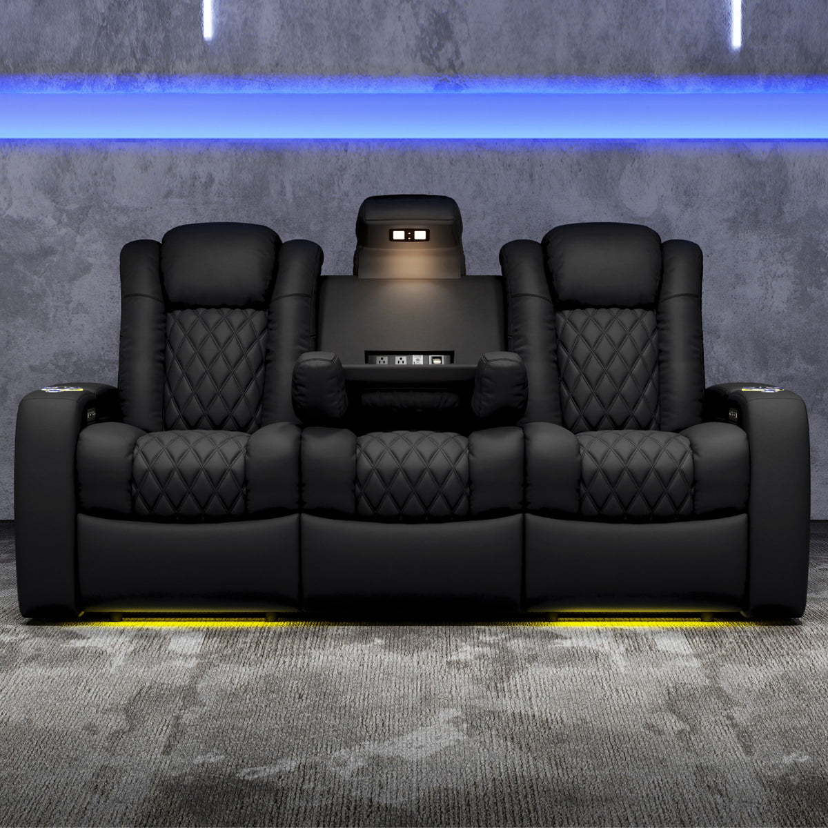 Tuscany XL Luxury Console is a luxurious upgrade from our Tuscany Luxury Console home theater couch. One movie night in this, and you’ll see why it’s the perfect high-end seat for your media room. It is the perfect seat for those seeking bespoke craftsmanship with a timeless design. Choose from rich black or brown leather upholstery on these home theater couches that can sit 3 or 5 people. Located on all parts of the chair that touch your body, the luxury Italian Matte Semi-Aniline 20,000 Nappa Leather is a step above our premium top grain Nappa leather 11000. The smooth buttery matte finish is unwavering in its perfection and luxe appeal.