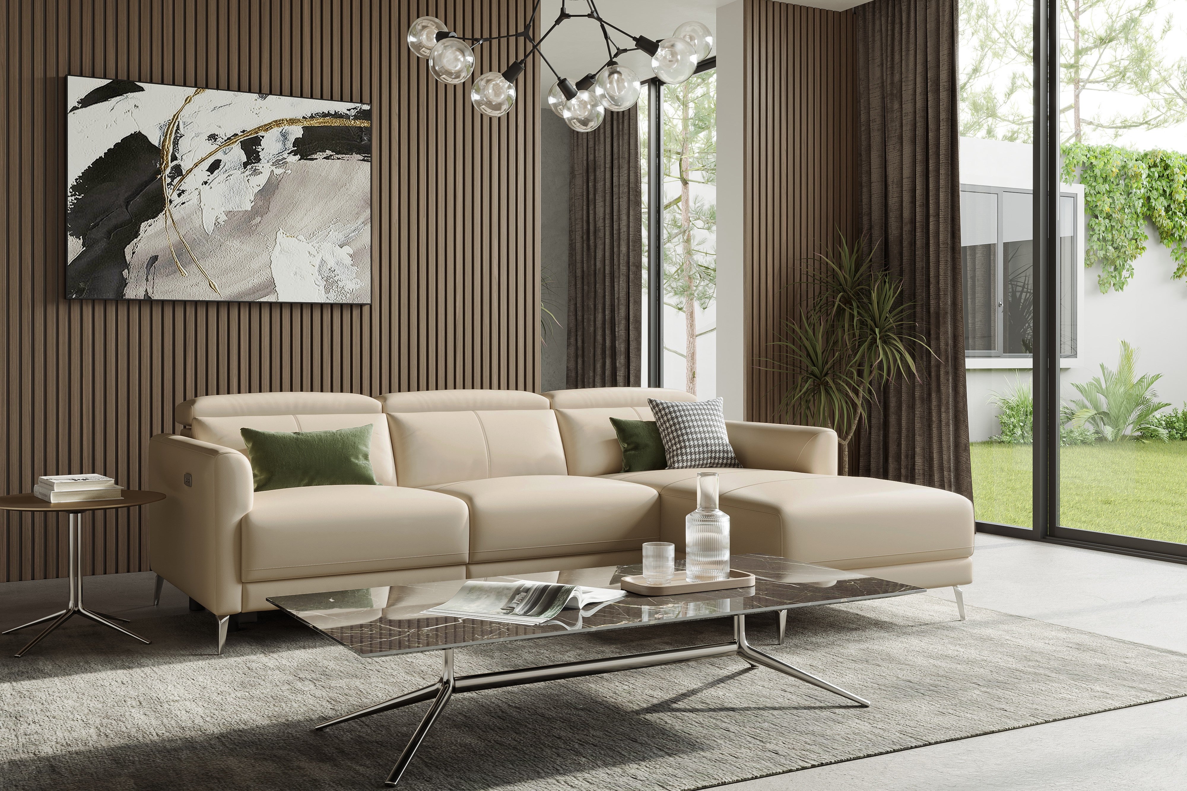 Valencia Andria Modern Right Hand Facing Top Grain Leather Reclining Sectional Sofa, Beige Color